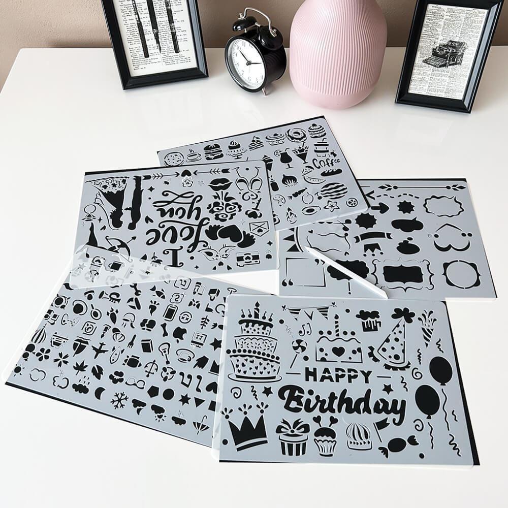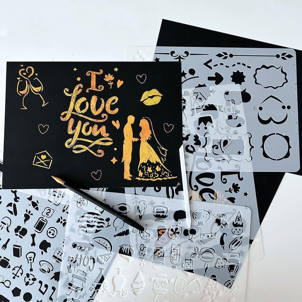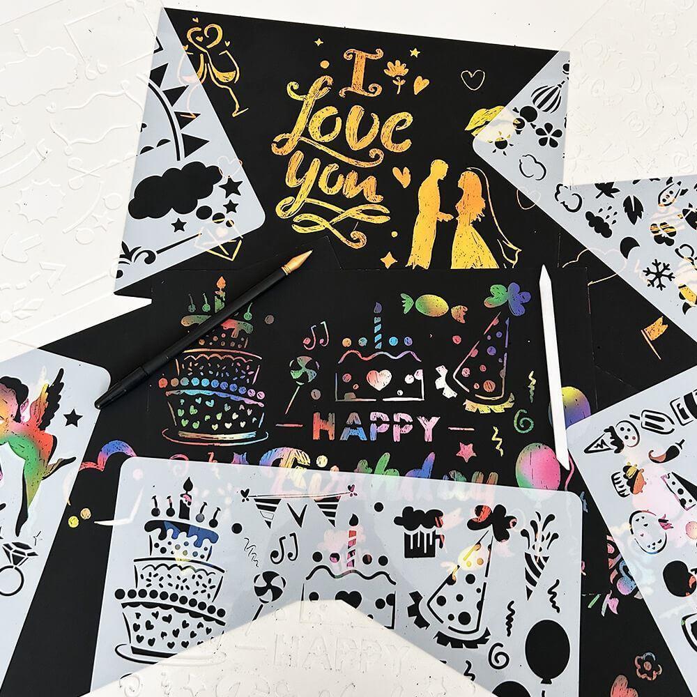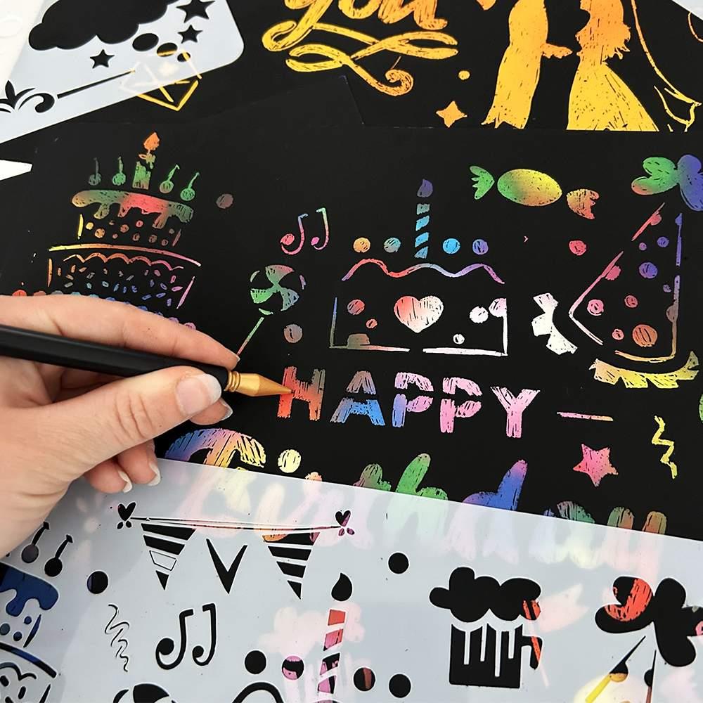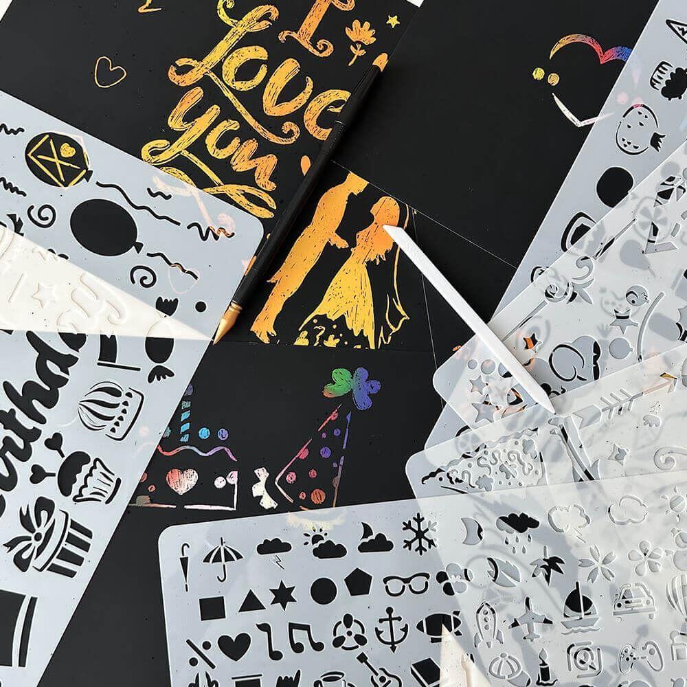 5 ks vyškrabávacích šablon A4 + 2 pera