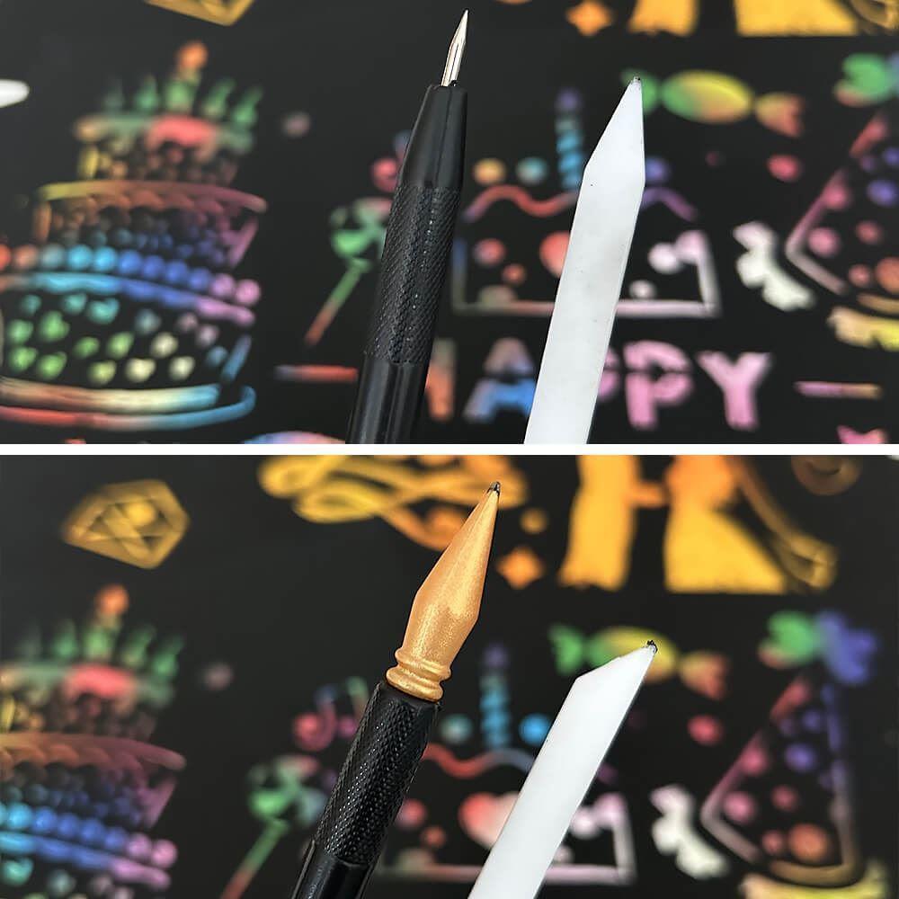 • 5 vyškrabáváních papírů (3 barevné, 2 zlaté)