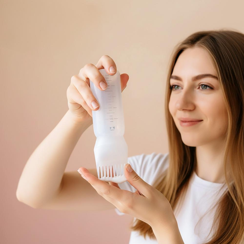 Každá žena zná zdlouhavý proces barvení vlasů, kdy barva cáká všude kolem a práce se štětcem je obtížná. Tomu je konec díky naší skvělé lahvičce s hřebenem.  Lahvičku stačí pouze naplnit smíchanou barvou a pomocí hřebínku nanášet barvu na vlasy. Šikovného pomocníka si zamiluje každá žena, která nechce chodit kvůli každému barvení či dobarvování vlasů ke kadeřníkovi.