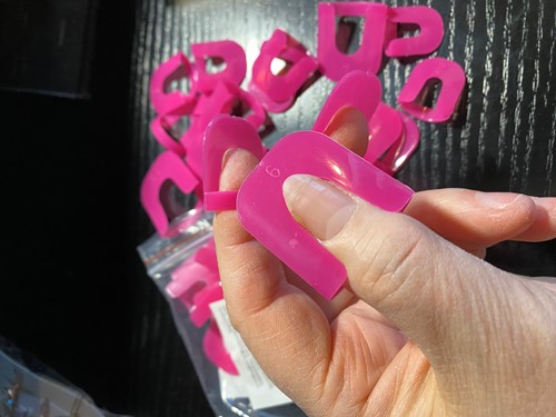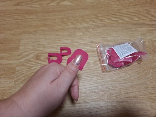 Šablon je v balení dostatek kusů v různých velikostech, nebudete tak mít problém najít tu svou. Nejprve vyberte potřebnou velikost šablony a nasaďte ji na prst (nehet musí být nad šablonou). Poté už jen stačí sáhnout po oblíbeném laku a nehet nalakovat. Až budete hotovi, šablonu z prstu sejměte.