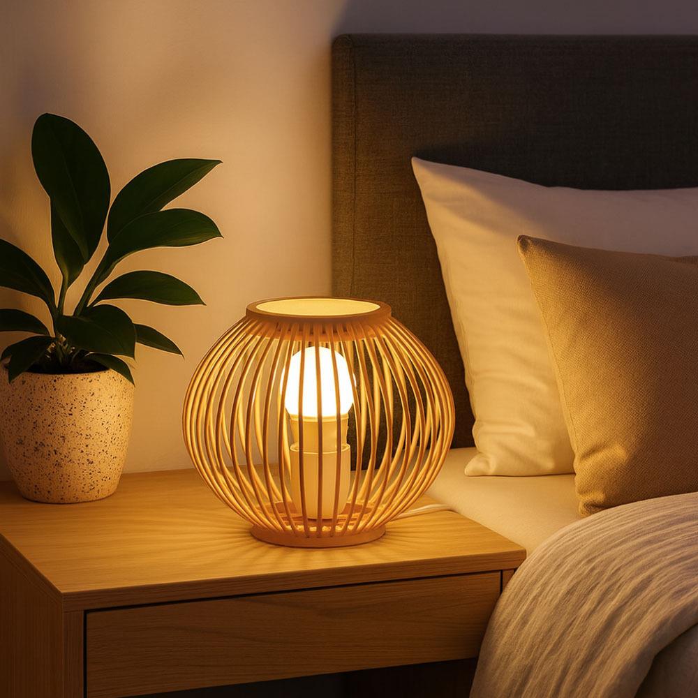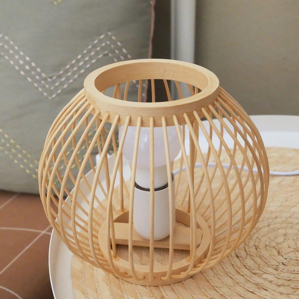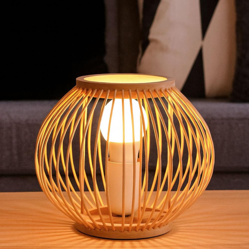 Bambusová stolní lampa s LED žárovkou, teplá bílá