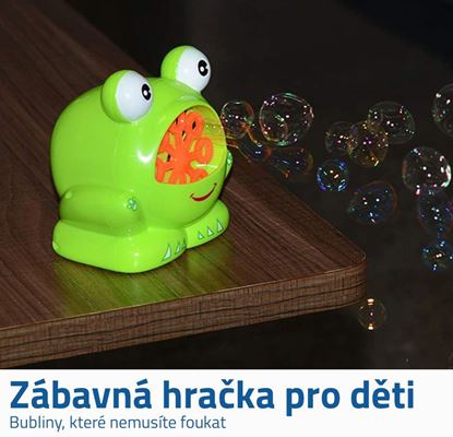 Zářivě zelená žába se širokým úsměvem se bude líbit klukům i holkám a co víc – umí vykouzlit nekonečné množství obrovských bublin. Koupání nikdy nebylo tak zábavné jako bude s bublající žábou, která navíc přehrává veselé melodie.