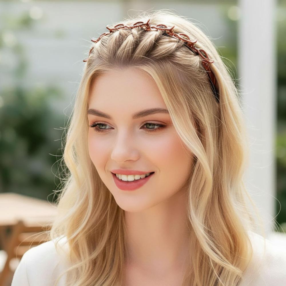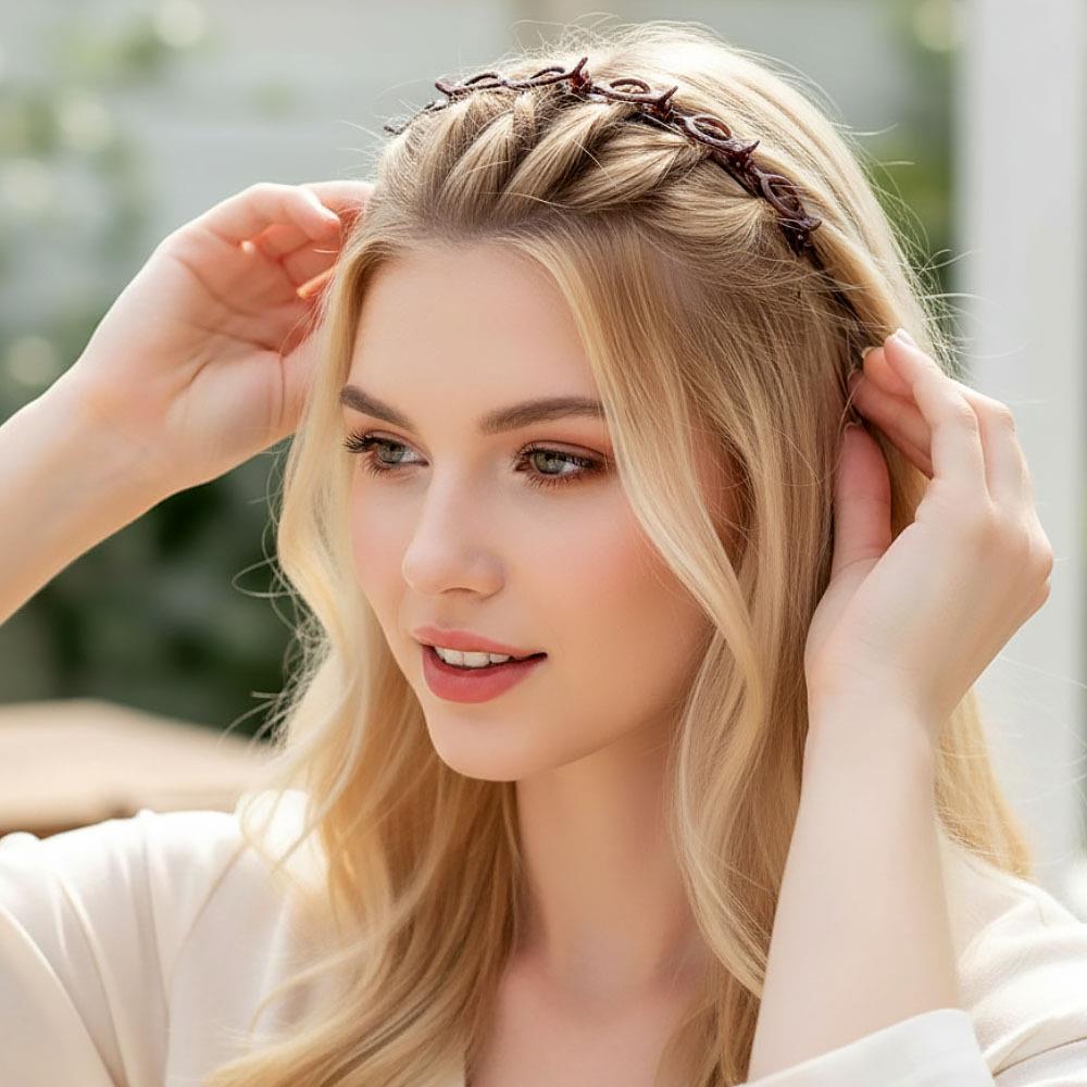 Vytvářejte krásné účesy díky čelence, která má sponky do vlasů po celé své délce. Umožňuje vytvářet opravdu jedinečné a trendy účesy a doplní váš celkový outfit.