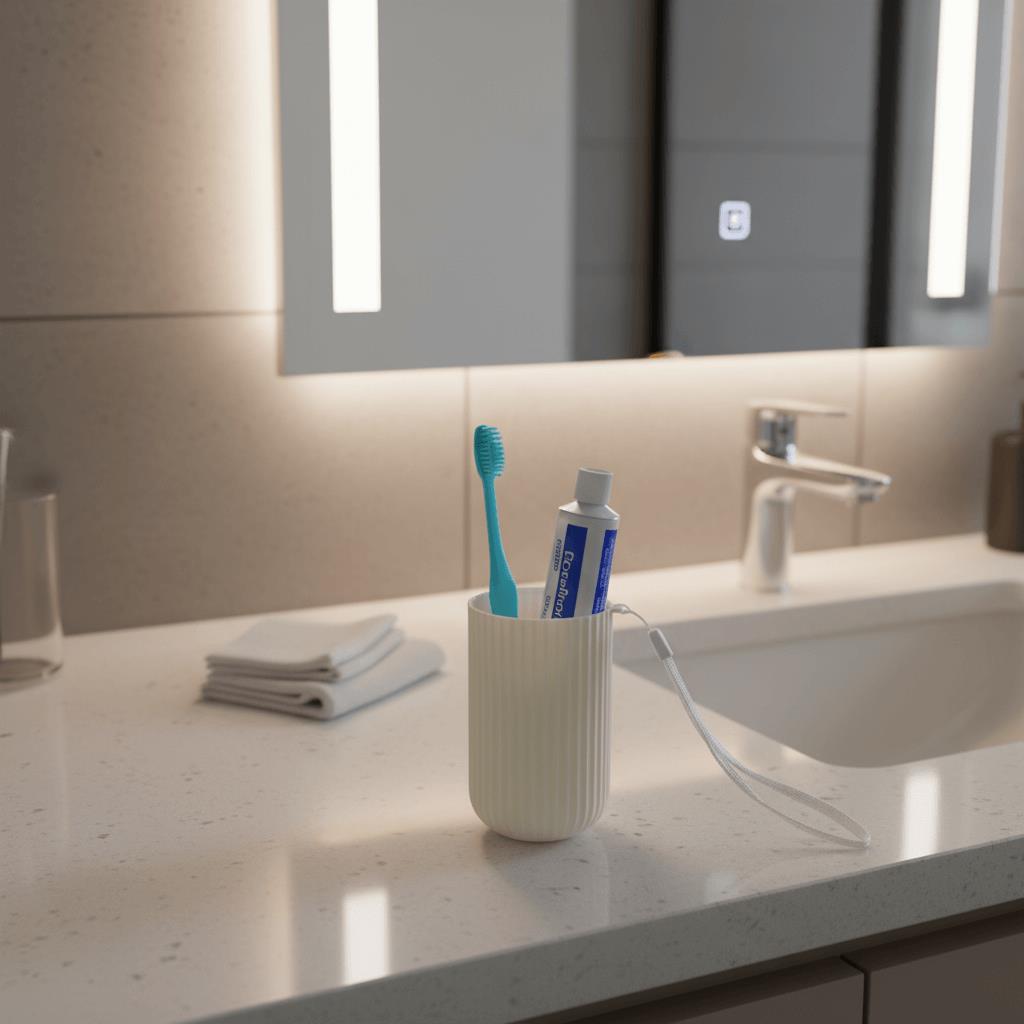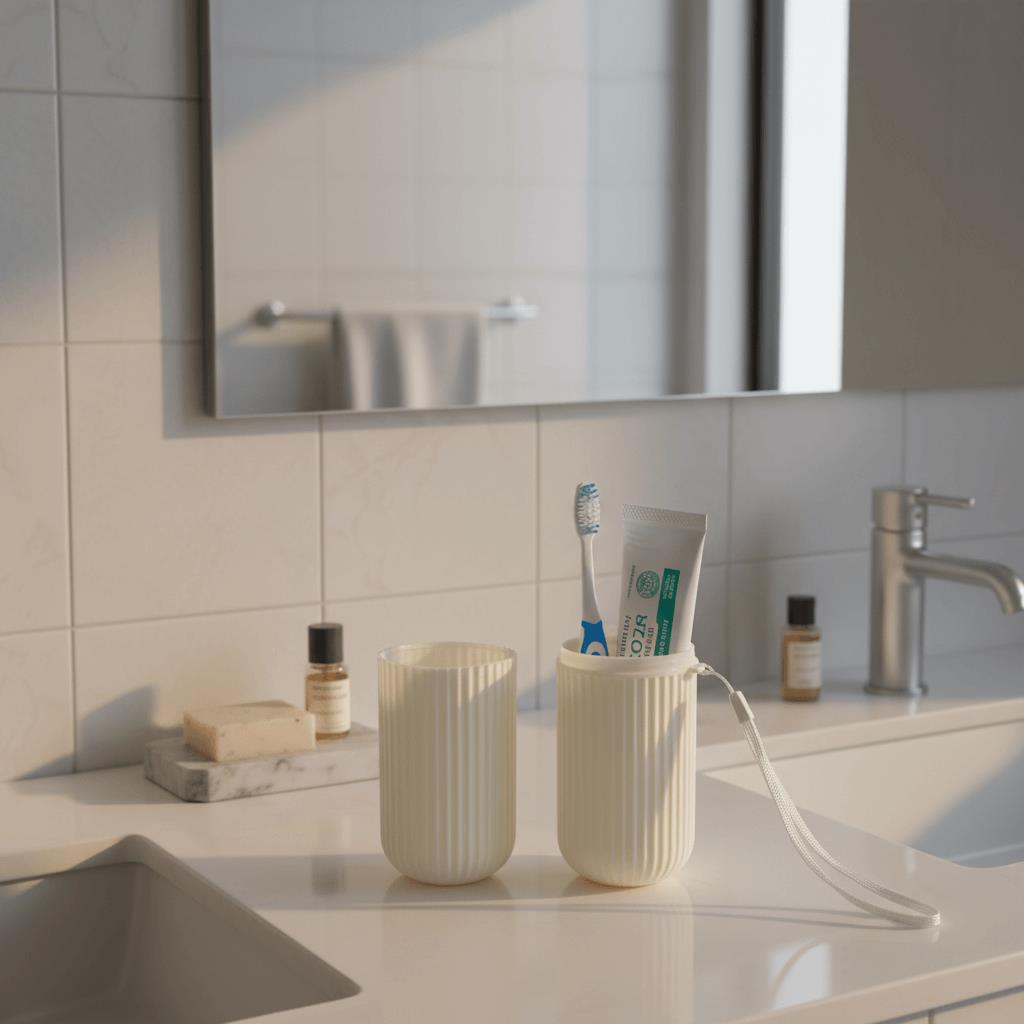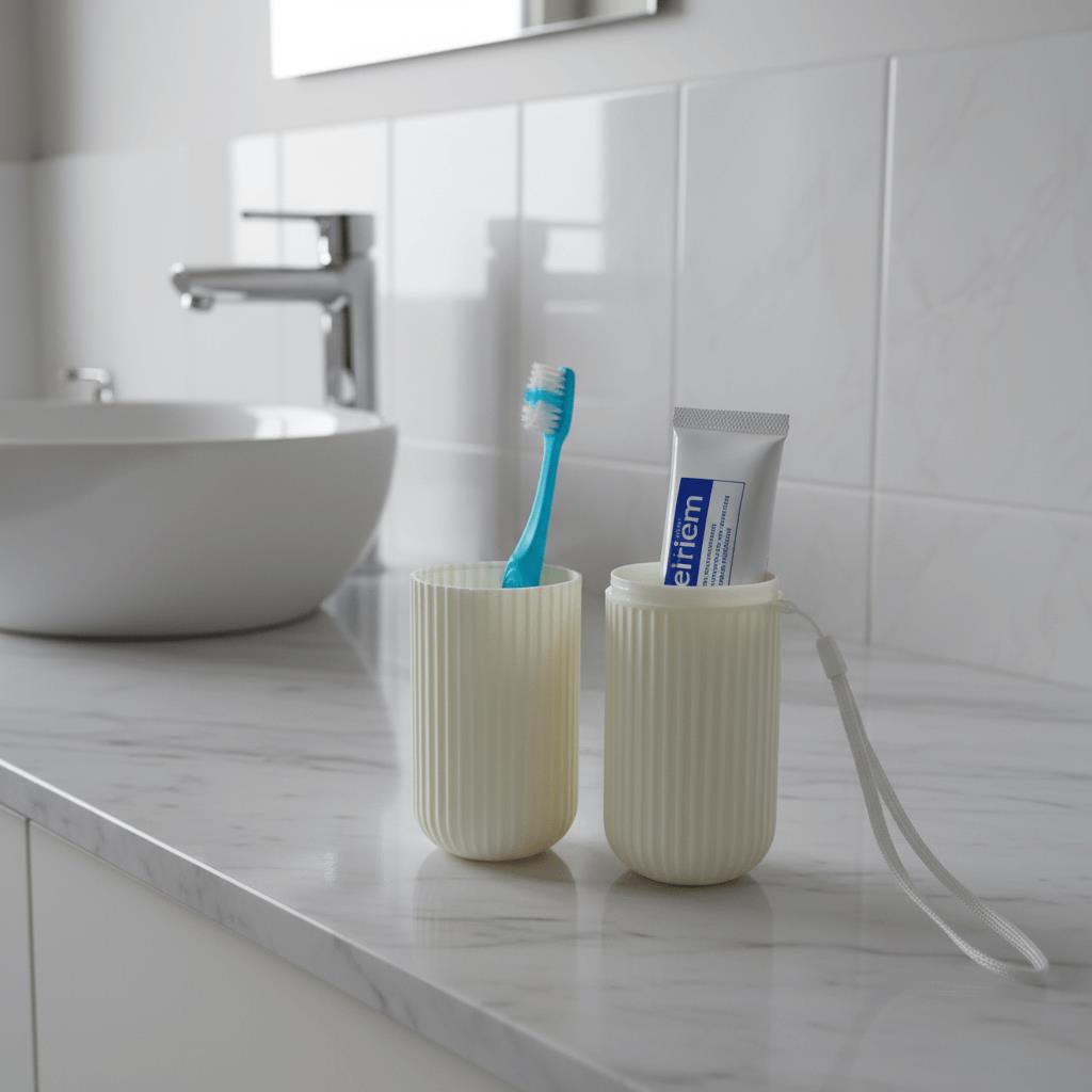 Cestovní pouzdro na zubní kartáček a pastu je ideální společník na cesty, výlety i každodenní přenášení do práce či školy. Elegantní design v krémovém barevném provedení zaujme na první pohled. Pouzdro je vyrobeno z odolného plastu, který ochrání kartáček i pastu před poškozením nebo znečištěním. Díky svému kompaktnímu tvaru se snadno vejde do tašky, batohu i kufru. Praktické poutko umožňuje snadné zavěšení nebo přenášení. Pouzdro se skládá ze dvou částí, které lze využít i jako kelímky. Stylové a hygienické řešení pro všechny, kdo si chtějí uchovat svůj úsměv i na cestách.