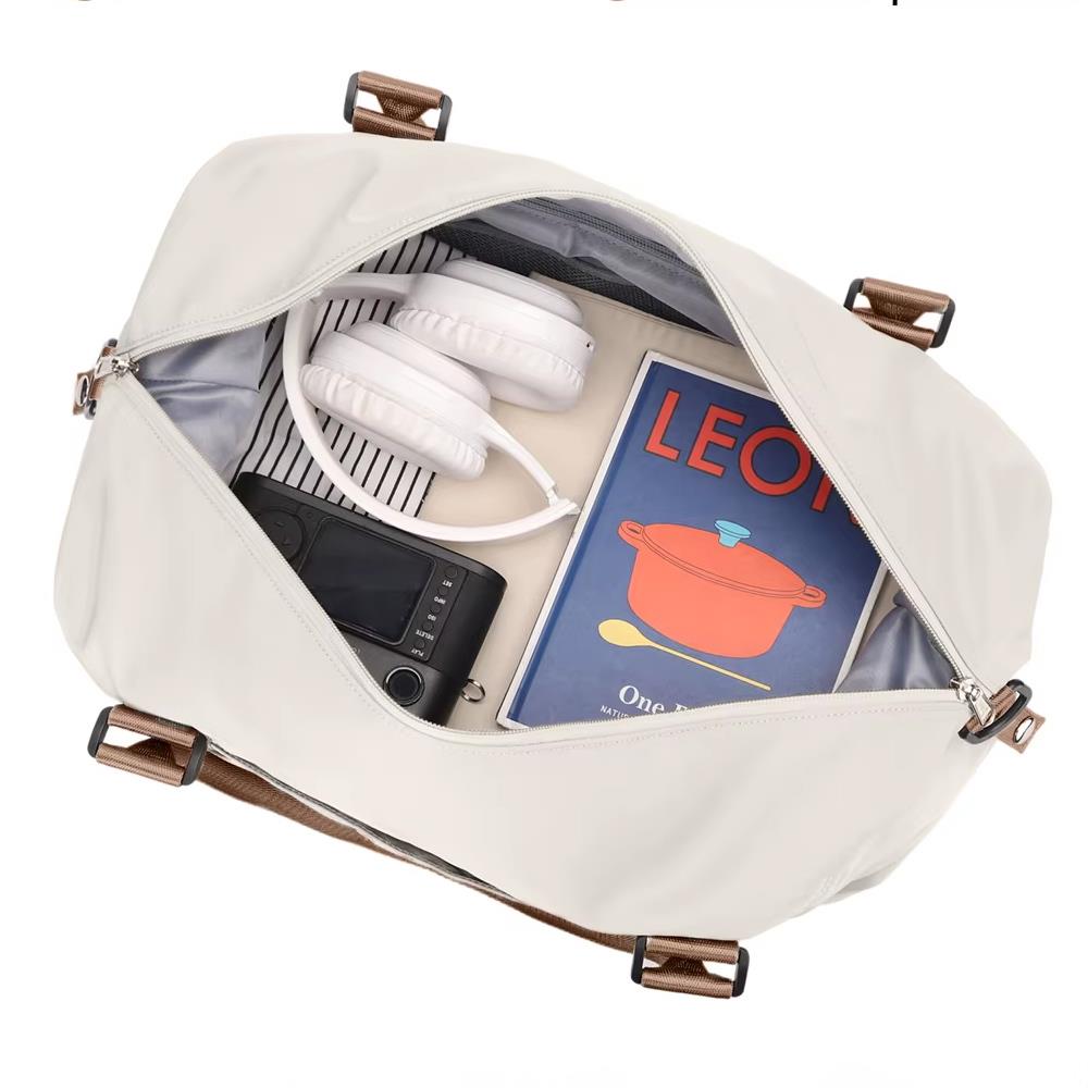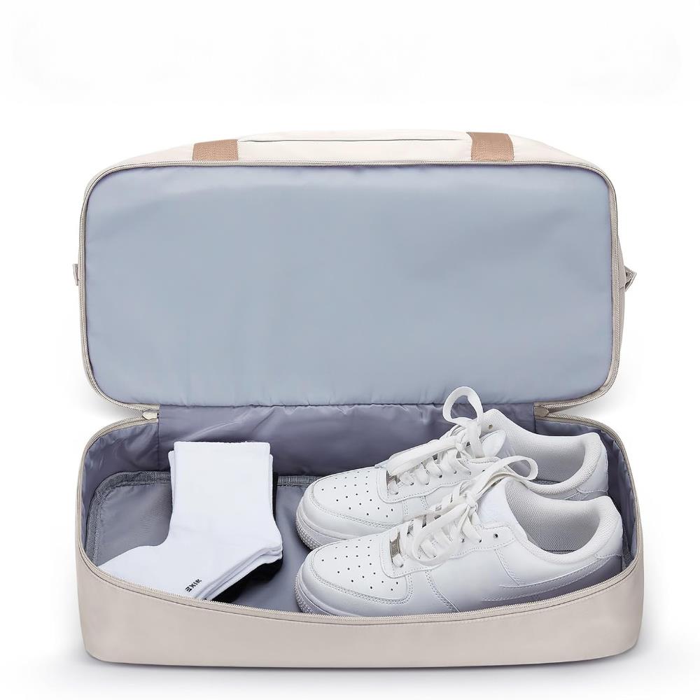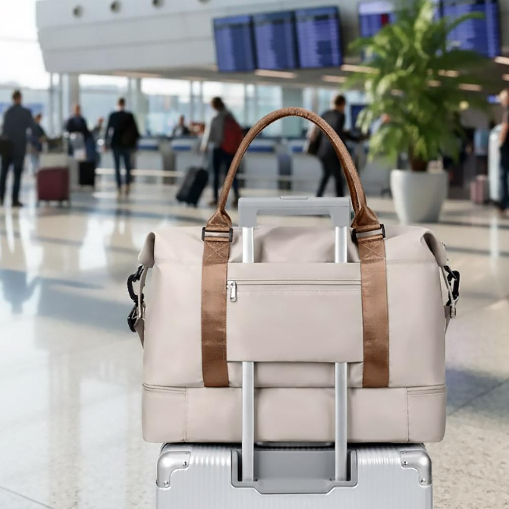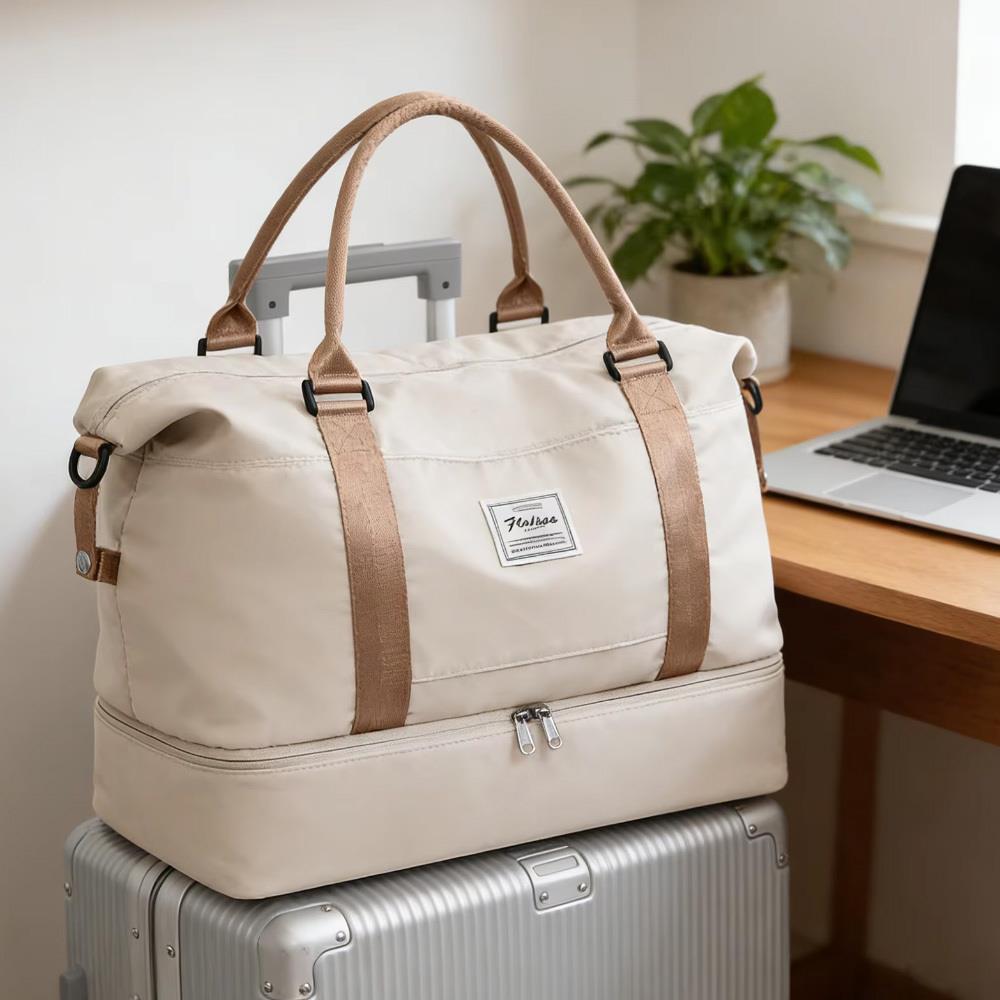 Nemusíte být ani zcestovalí, abyste věděli, že správné zavazadlo je základem klidné a bezproblémové cesty. Pokud se chystáte pryč na víkend nebo služební cestu, velký kufr nebo taška jsou zbytečné, avšak batoh nebo kabelka na věci úplně nestačí. Proto pro vás máme tuto krásnou cestovní tašku, kterou využijete jak do letadla, tak třeba jen na odpoledne v posilovně. Ve spodní části se ukrývá prostor pro obuv, uvnitř pak několik kapes, abyste si mohli oddělit produkty osobní hygieny, cennosti a oblečení, a zároveň měli vše skvěle uspořádané. Využijete ji také jako příruční zavazadlo a zároveň ji i snadno připevníte k cestovnímu kufru. Můžete ji nosit v ruce jako kabelku, nebo přehodit přes rameno díky odnímatelnému polstrovanému popruhu. Zkrátka, stane se vaším nepostradatelným společníkem, kamkoli se vydáte, a díky voděodolnému zpracování a vychytanému designu se na ni budete moci spolehnout. Ať už to bude za oceán nebo pár metrů do posilovny, s kabelkou bude každá cesta příjemná a fajn.
