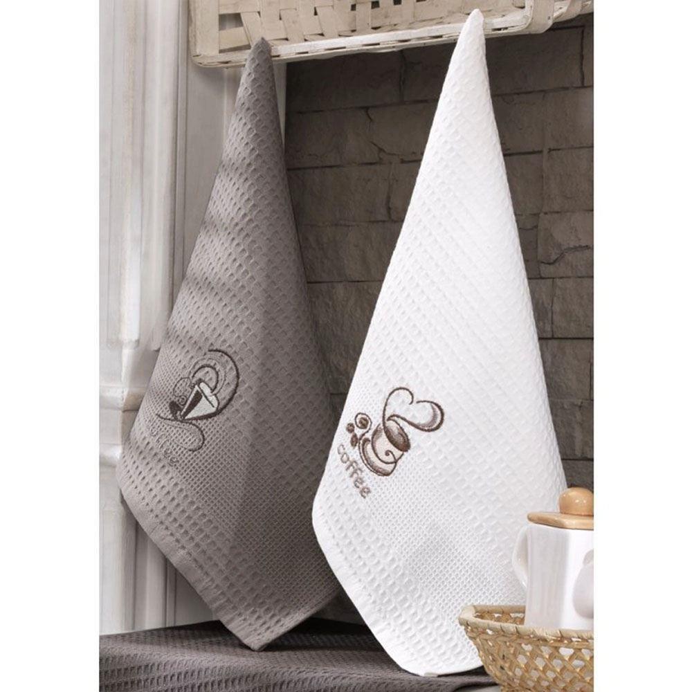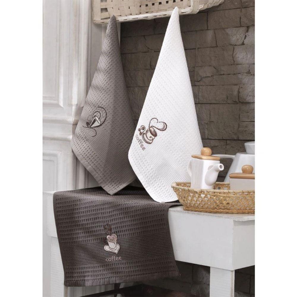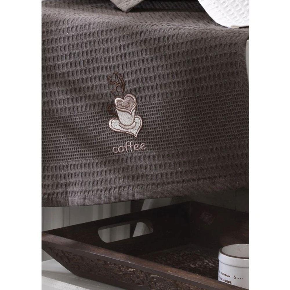 Vaflové utěrky jsou perfektním doplňkem pro každou kuchyni a tato sada je ideálním dárkem pro milovníky kávy. Jsou vyrobeny ze 100% bavlny, což zaručuje jejich vysokou savost a dlouhou životnost. Vaflový vzor s dekorem kávových hrníčků a nápisy "coffee" dodává kuchyni elegantní a stylový vzhled.