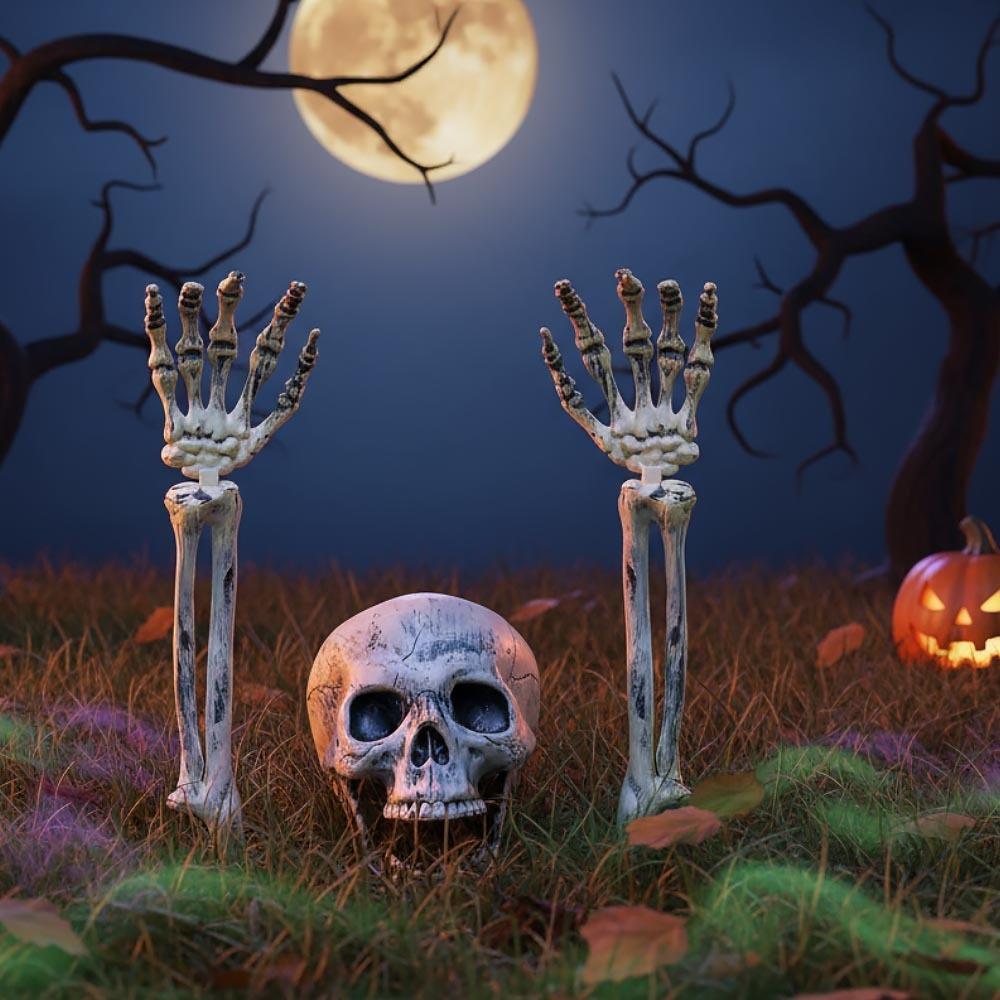 Vítr sviští po strništích a vy už ve vzduchu cítíte, že je tu zase to strašidelné, ale také magicky zábavné období Halloweenu? Pokud si navíc potrpíte na řádně bubákovskou výzdobu, máme něco přesně pro vás! Zastraší i pobaví, a kdo že to je? Ze země se hrabající kostlivec! Ze svého příbytku se vydrásal na světlo světa, aby všem dal vědět, že nastal strašidelný svátek. Vy však víte, že není, čeho se bát, a tak si kostlivce můžete různě naaranžovat a přesunout přesně tam, kde bude dělat největší hrůzostrašnou parádu. Zapíchněte jej třeba k cestě k vašemu domu, kde přivítá halloweenské koledníky, ale i vyleká nic netušící návštěvy. Můžete mu i různě ohnout kostnaté ruce nebo upravit úsměv pohybem v pantech. Také mu můžete přidat pár vkusných doplňků, třeba klobouk, a něco přidat do rukou, aby bylo znát, že je kostlivec váš.