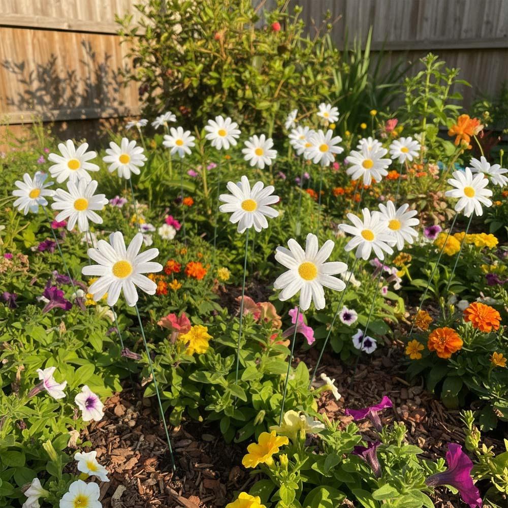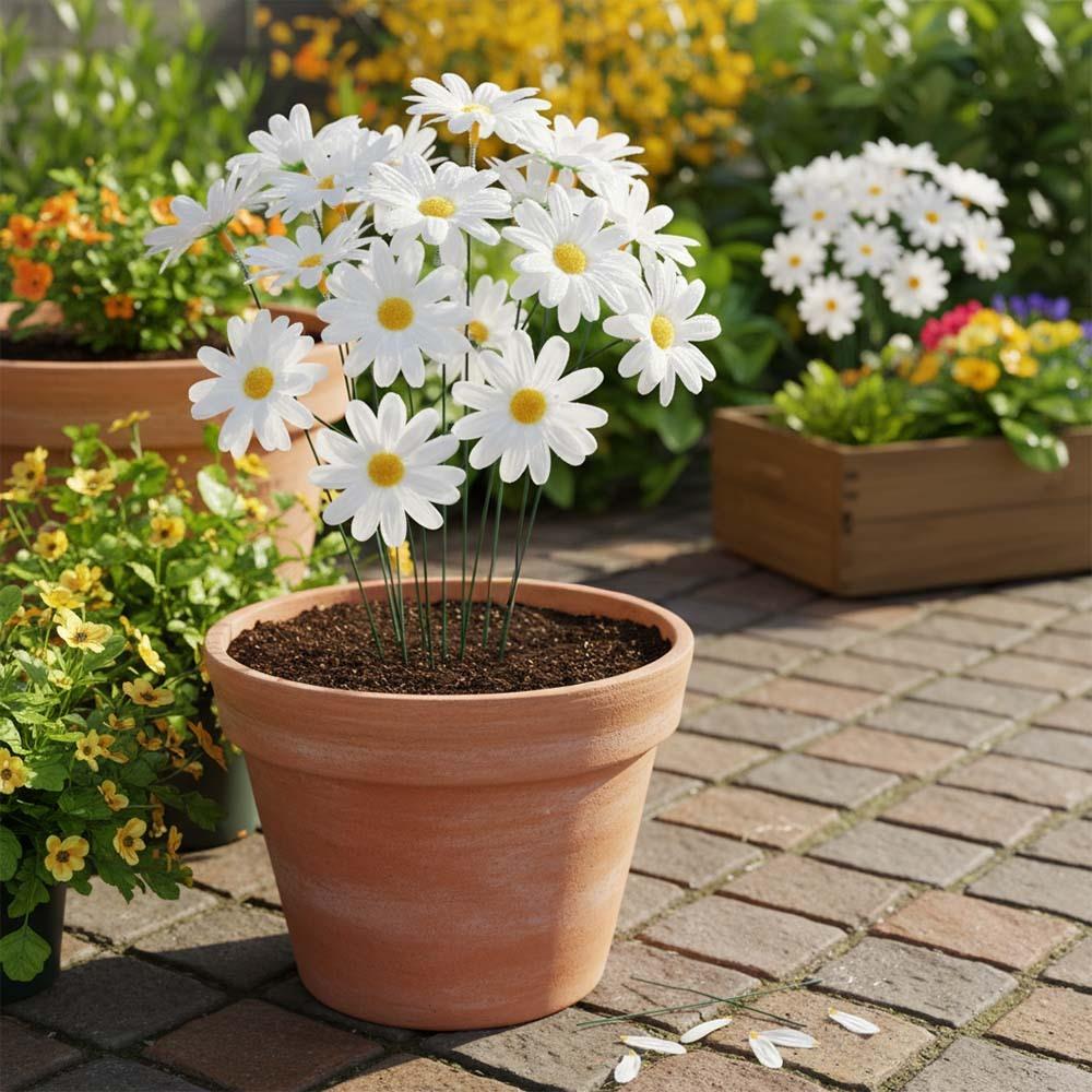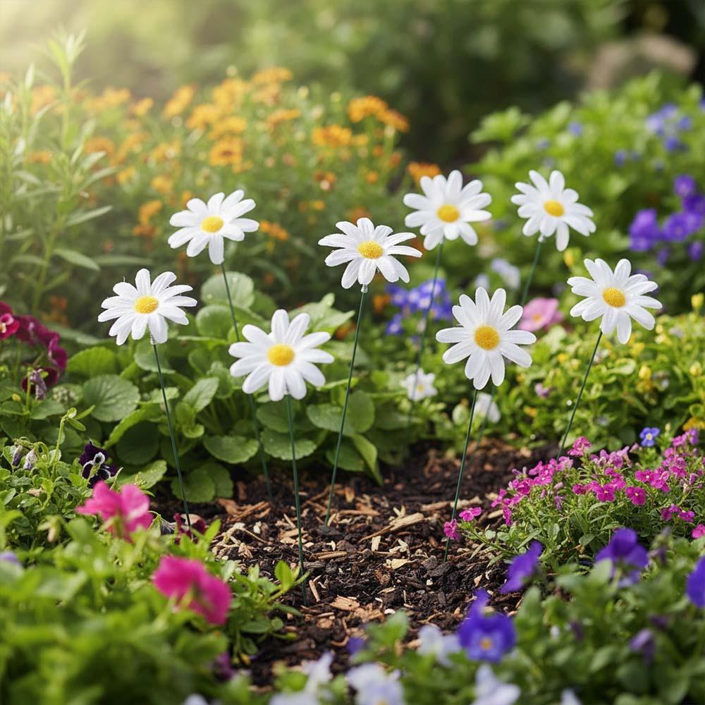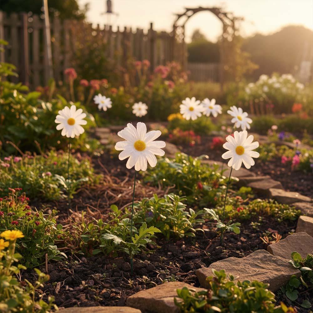 Vneste do zahrady kouzlo kvetoucích luk – bez potřeby zalévání, stříhání nebo jiné údržby! Dekorativní kopretinové zápichy jsou ideálním řešením pro ty, kteří chtějí své venkovní prostory ozvláštnit a rozjasnit ihned. Zápichy se jednoduše umisťují do trávníku, záhonu, květináče nebo třeba podél zahradních chodníčků. Zvládnou déšť, vítr i ostré slunce a budou zářit po celý rok.