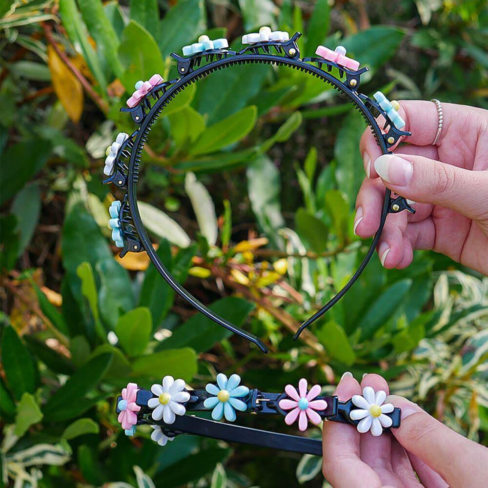 Vytvořte jedinečné a barevné účesy díky čelence se sponkami! Použití je velmi jednoduché a vykouzlit nádherný účes tak zvládne opravdu každý. Čelenku stačí umístit na temeno hlavy a poté jednotlivými sponkami provléci pramínky vlasů. Zda uděláte ze všech vlasů culík nebo z jednotlivých pramínků drobné copánky je už jen a jen na vás, fantazii se meze nekladou!