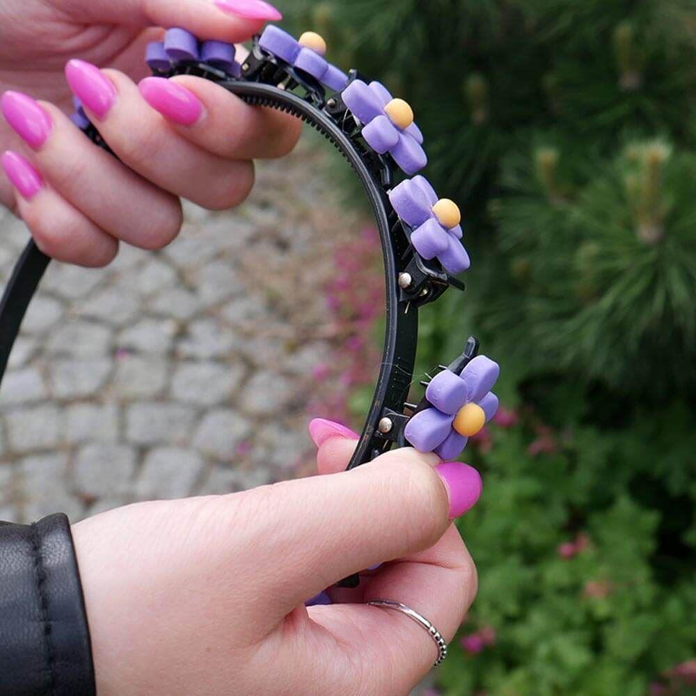 Vytvořte jedinečné a barevné účesy díky čelence se sponkami! Použití je velmi jednoduché a vykouzlit nádherný účes tak zvládne opravdu každý. Čelenku stačí umístit na temeno hlavy a poté jednotlivými sponkami provléci pramínky vlasů. Zda uděláte ze všech vlasů culík nebo z jednotlivých pramínků drobné copánky je už jen a jen na vás, fantazii se meze nekladou!
