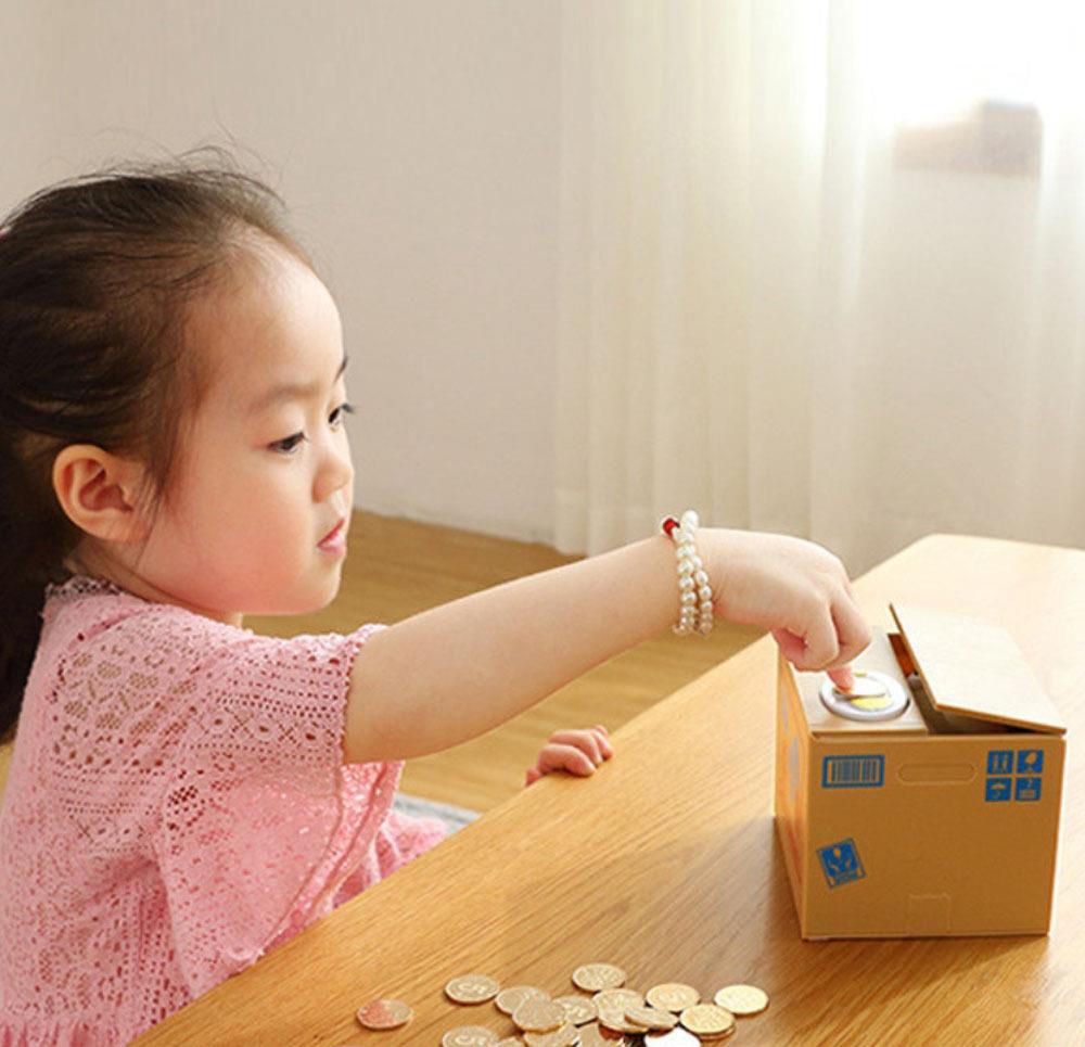 Tato kouzelná kasička v podobě kartonové krabice dětem pomůže mít nad financemi kontrolu. V kasičce se skrývá zvířátko, které penízky vašich dětí bedlivě ohlídá. Nevěříte? Zkuste položit mince do misky na vrchní stranu kasičky. Víko se otevře a z krabice vykoukne zvířátko, které penízky shrábne packou a schová pěkně k sobě.