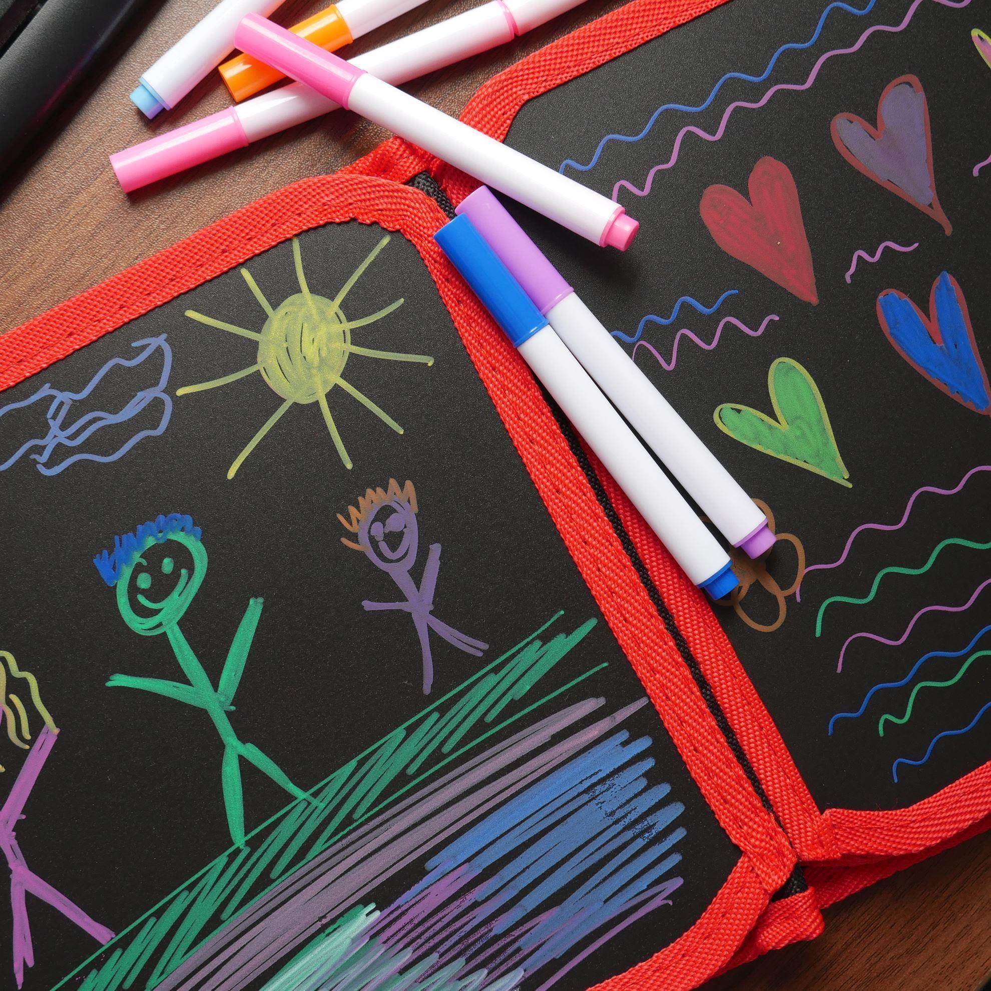 Součástí knížky je i šikovná kapsička, kde je několik barevných fixek. Kapsička je tak dobře udělaná, že z ní fixky nevypadnou a hned se nepoztrácejí. Namalované obrázky jdou dobře setřít pomocí vlhkého hadříku. Knížka se dá využít kdekoliv, v čekárně u doktora, na cestách autem, vlakem, autobusem, anebo na doma. Všude dokáže děti zabavit.