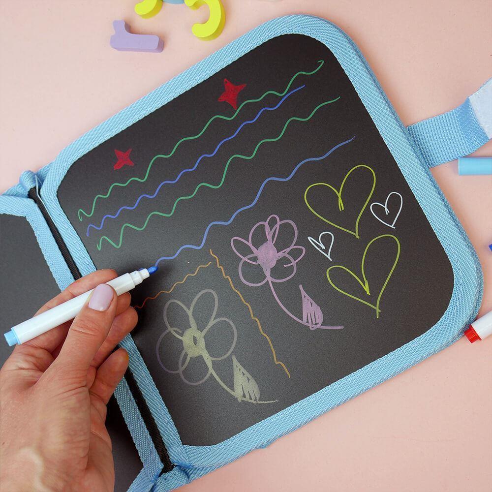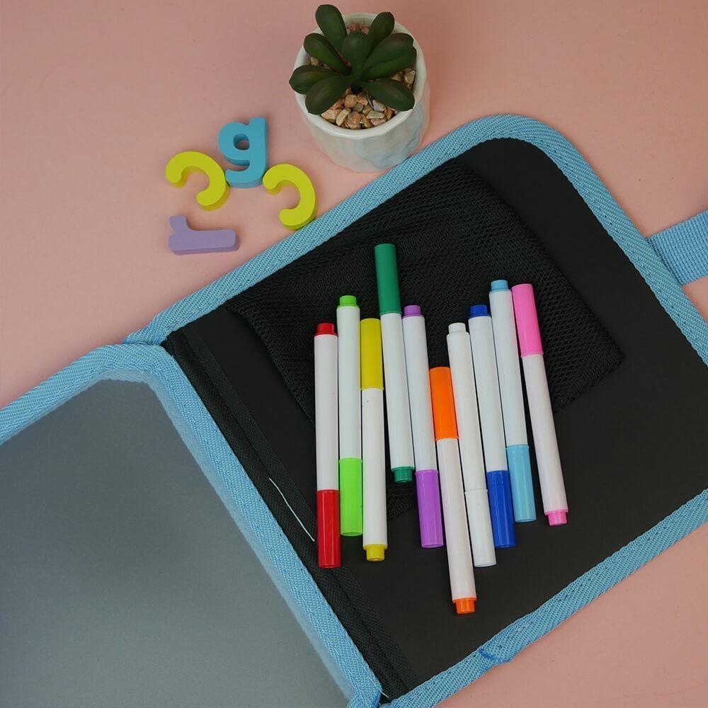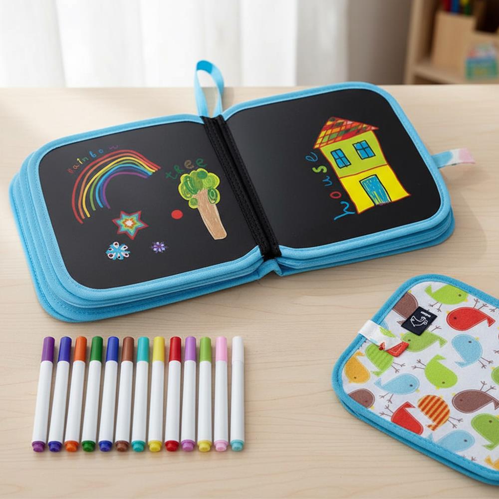 Součástí knížky je i šikovná kapsička, kde je několik barevných fixek. Kapsička je tak dobře udělaná, že z ní fixky nevypadnou a hned se nepoztrácejí. Namalované obrázky jdou dobře setřít pomocí vlhkého hadříku. Knížka se dá využít kdekoliv, v čekárně u doktora, na cestách autem, vlakem, autobusem, anebo na doma. Všude dokáže děti zabavit.