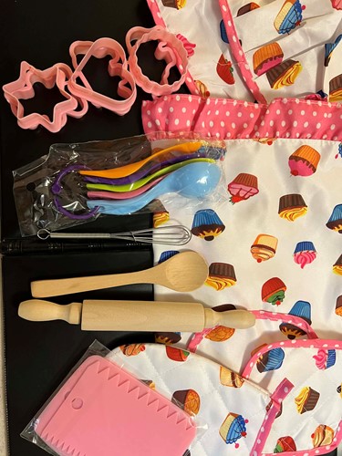 • Náčiní na pečení: 1x váleček, 5x odměrka, 3x stěrka, 1x metlička, 1x naběračka, 6x vykrajovátko