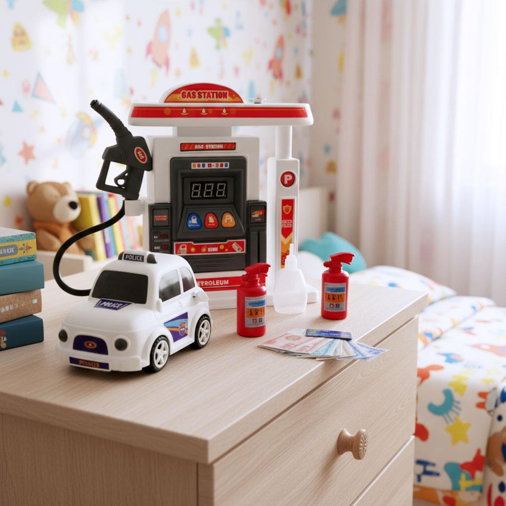 K dispozici jim budou i papírové peníze, platební karta, a dokonce i hasicí přístroj – zkrátka, jako kdyby byli na stanici skutečné. Natankované autíčko navíc po naplnění vypouští mlhu z výfuku a dokonce se i samo umí vyhýbat překážkám. S touto sadou čeká na děti spousta překvapení ve formě zvuků a světel, a hlavně dlouhé hodiny plné skvělé zábavy!