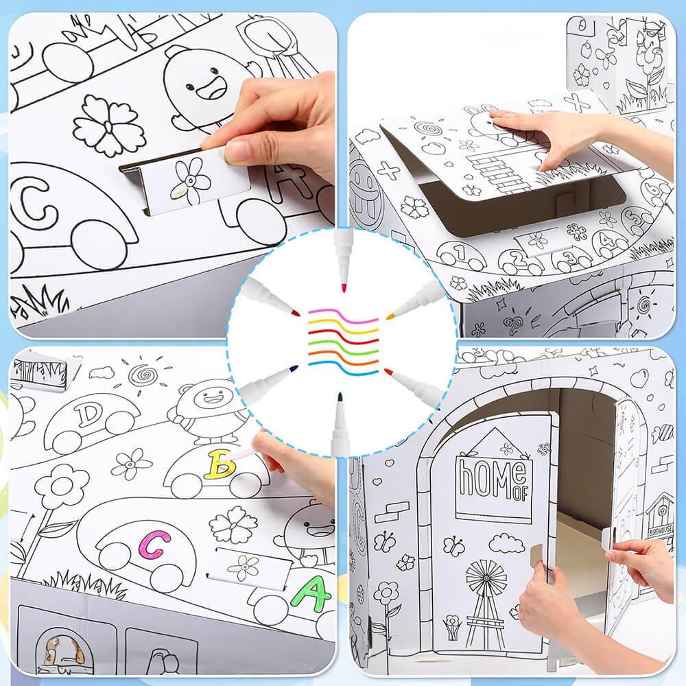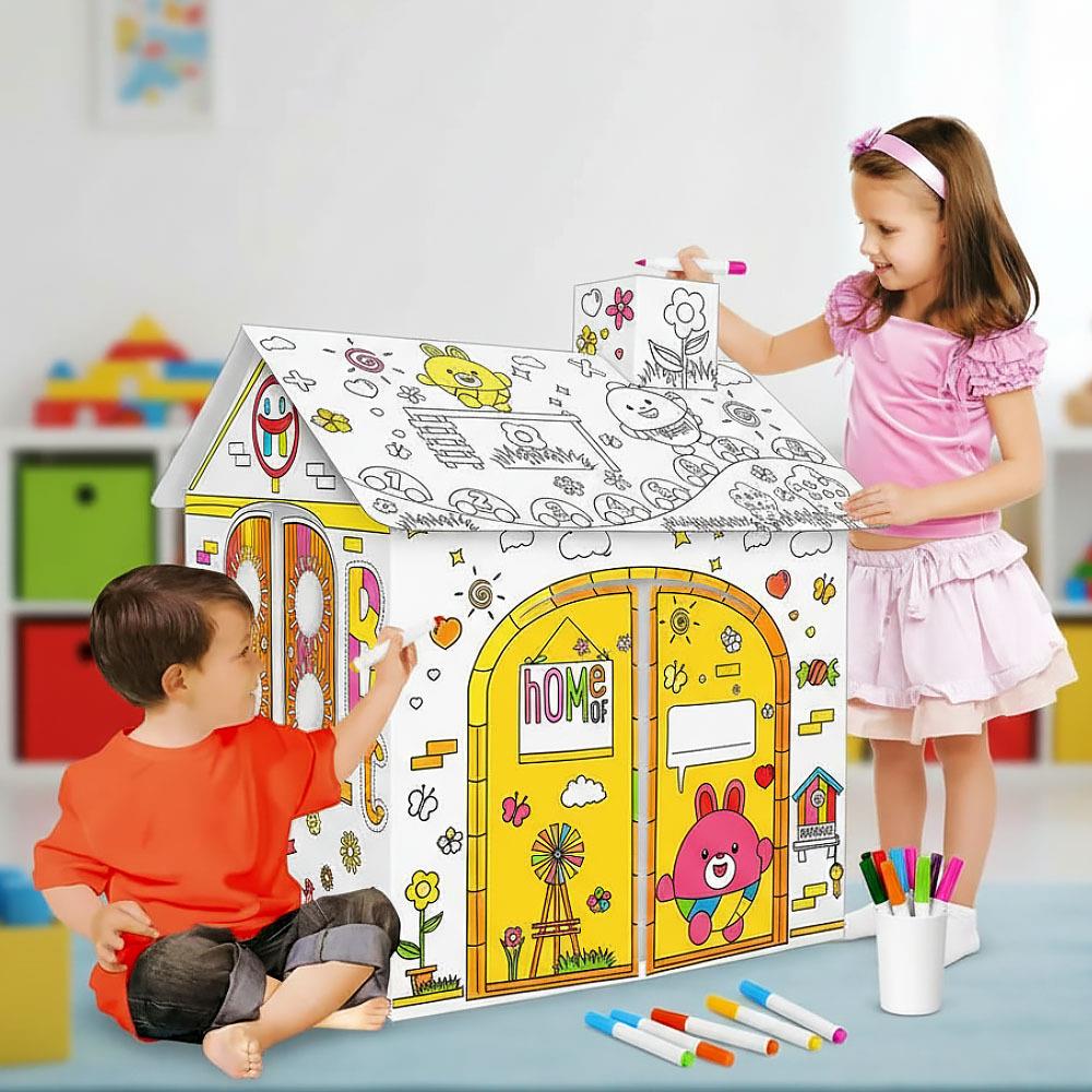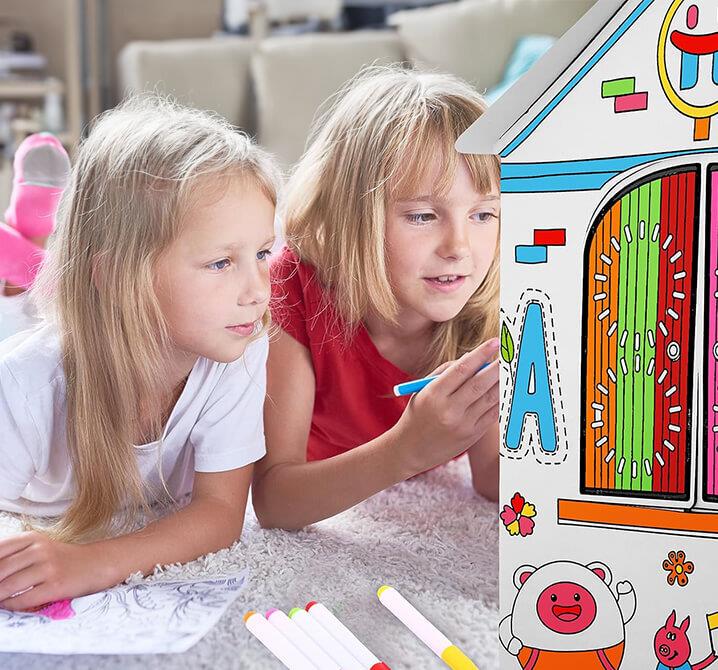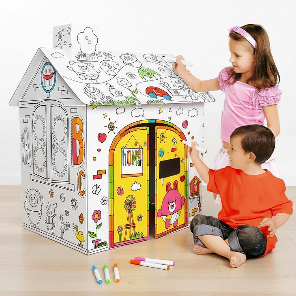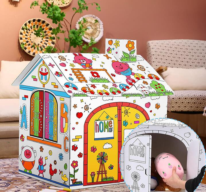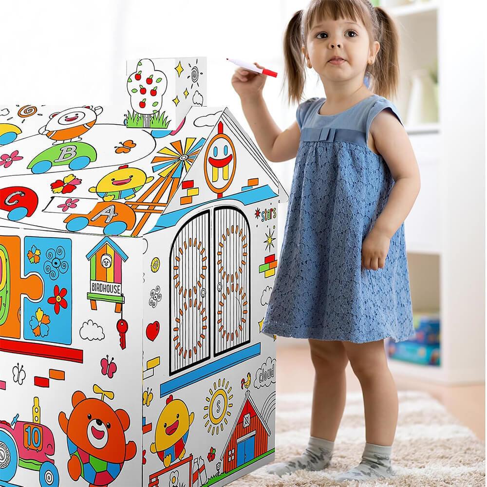 Dětský domeček k vybarvení je ideální hračkou pro děti všech věkových kategorií. Děti si mohou vlastní domeček nejen postavit, ale také ho vyzdobit dle své fantazie. Díky prostoru uvnitř nabízí skvělé místo pro schovávání.