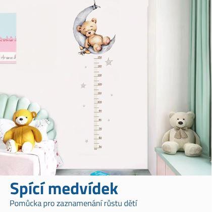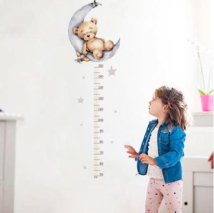 Dětský nalepovací metr na zeď - medvídek na měsíčku