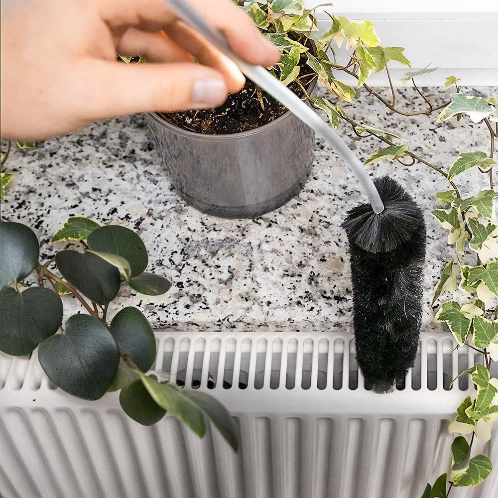 Dlouhý kartáč na čištění radiátorů je ideální pomocník pro úklid míst, kam se běžně nedostanete. Prach se v radiátorech hromadí celé měsíce a při topení se pak snadno víří do vzduchu – právě proto se vyplatí topení čas od času pořádně vyčistit.