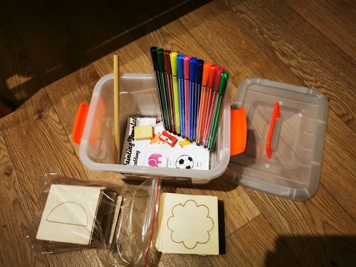 Sada pěkně zabalená, dřevěné šablony pěkně opracované, není možné se skrabnout. Fixy, guma, vse funkční.