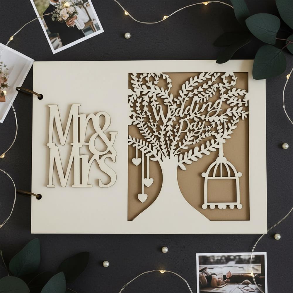 Napjatě očekáváte svůj velký den D a přemýšlíte, co ještě vám tak chybí? Možná je to právě tato kouzelná dřevěná svatební kniha hostů! Spousta z těch, co už mají svatbu za sebou, se totiž shodnou, že při tom všem shonu nestihlo pořádně pobavit se všemi svatebčany, což je velká škoda. Tato kniha sice nezaručí, že na své hosty budete mít čas, ale rozhodně zajistí, že i po letech budete vědět, kdo na svatbě byl, a také si k tomu přečtete i pár vzkazů. které vám v ní zanechali.