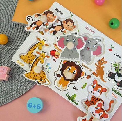 Obrázkové vkládačky zůstávají hitem mezi menšími dětmi a bývají jedněmi z těch nejoblíbenějších logických hraček. Aby také ne, však je to zábava, pozorovat, kam by daný motiv mohl patřit, a těšit se, když se dítko trefí a dílek s lehkostí zapadne do výřezu. Jednu takovou pro vás také máme, a jsme si jisti, že děti nejen zabaví, ale také se s její pomocí přiučí spoustě dovedností, například jemné motorice, rozpoznávání tvarů a jejich asociaci, a díky anglickým popiskům u jednotlivých obrázků se postupně také naučí, jak se slovíčko řekne v cizím jazyce.
