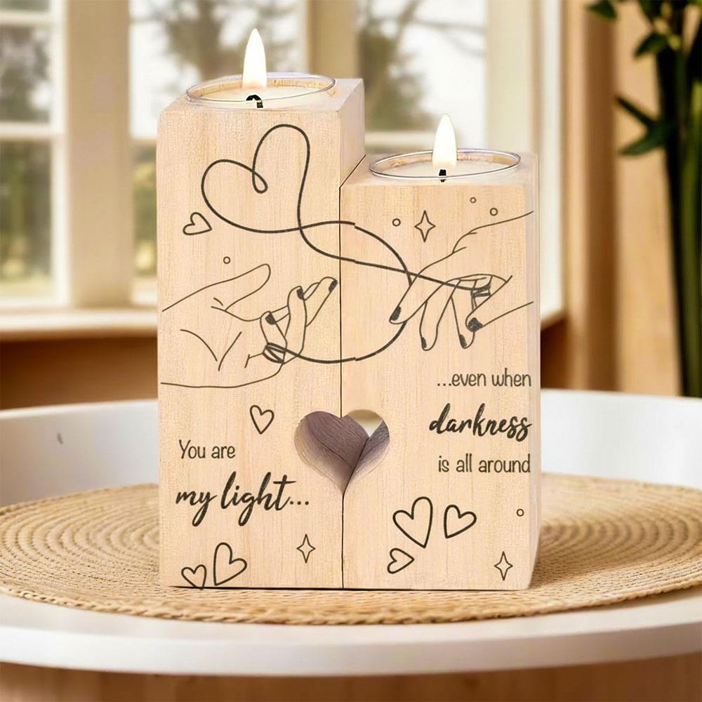Tyto dřevěné svícny na čajové svíčky pro páry nejsou jen dekorací, ale především nositelem emocí. Každý set obsahuje dva svícny různé výšky, které k sobě patří – stejně jako dva lidé, které spojuje láska, přátelství a hluboké pouto.