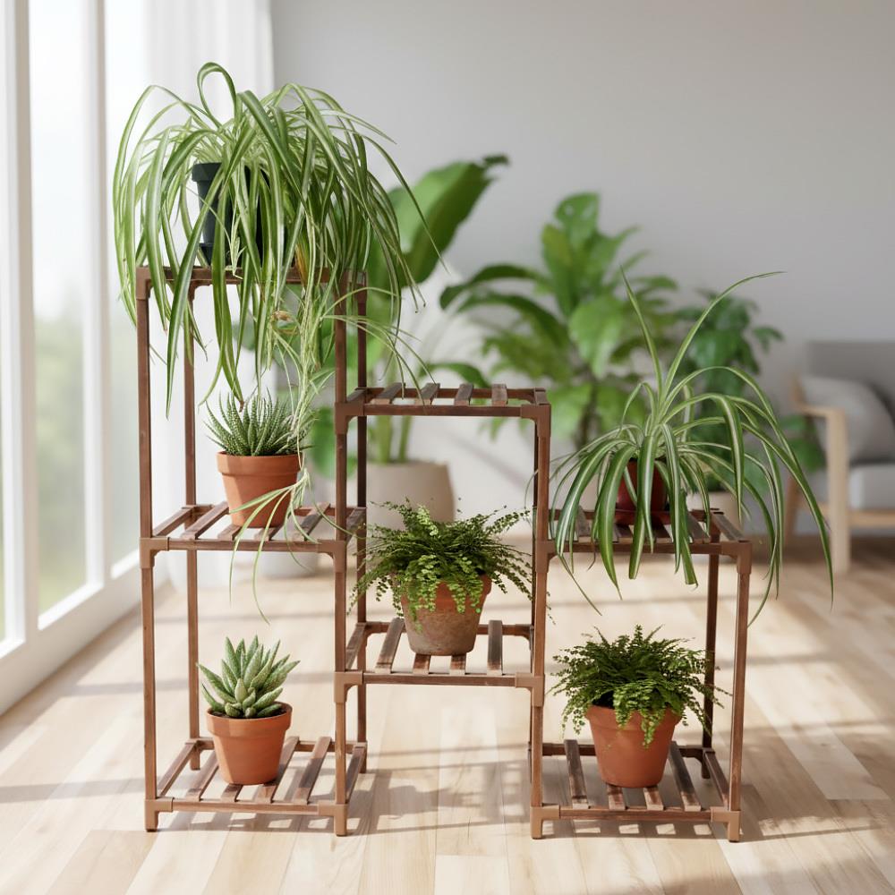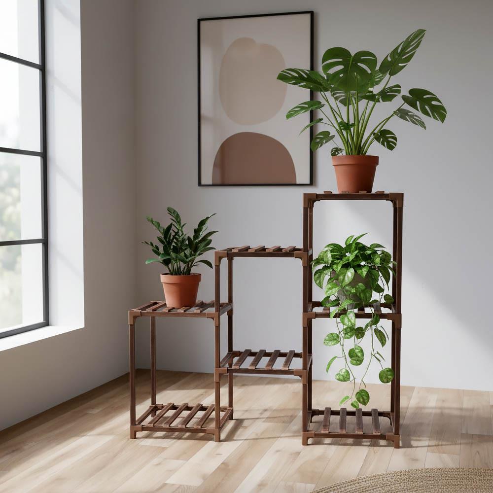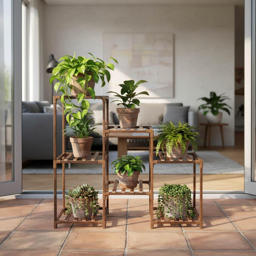Přeplněné poličky, parapety, které z každého otevírání okna udělají zdlouhavou operaci – i tak to často vypadá u milovníků pokojových rostlin. Jenže kdo by jen tak nechal v obchodě ten speciální druh, po kterém touží už nějakou dobu a ve sbírce mu chybí? Zatočte s nedostatkem prostoru a vykouzlete si doma zelenou oázu pohody, s tímto dřevěným stojanem na rostliny je to tak snadné!