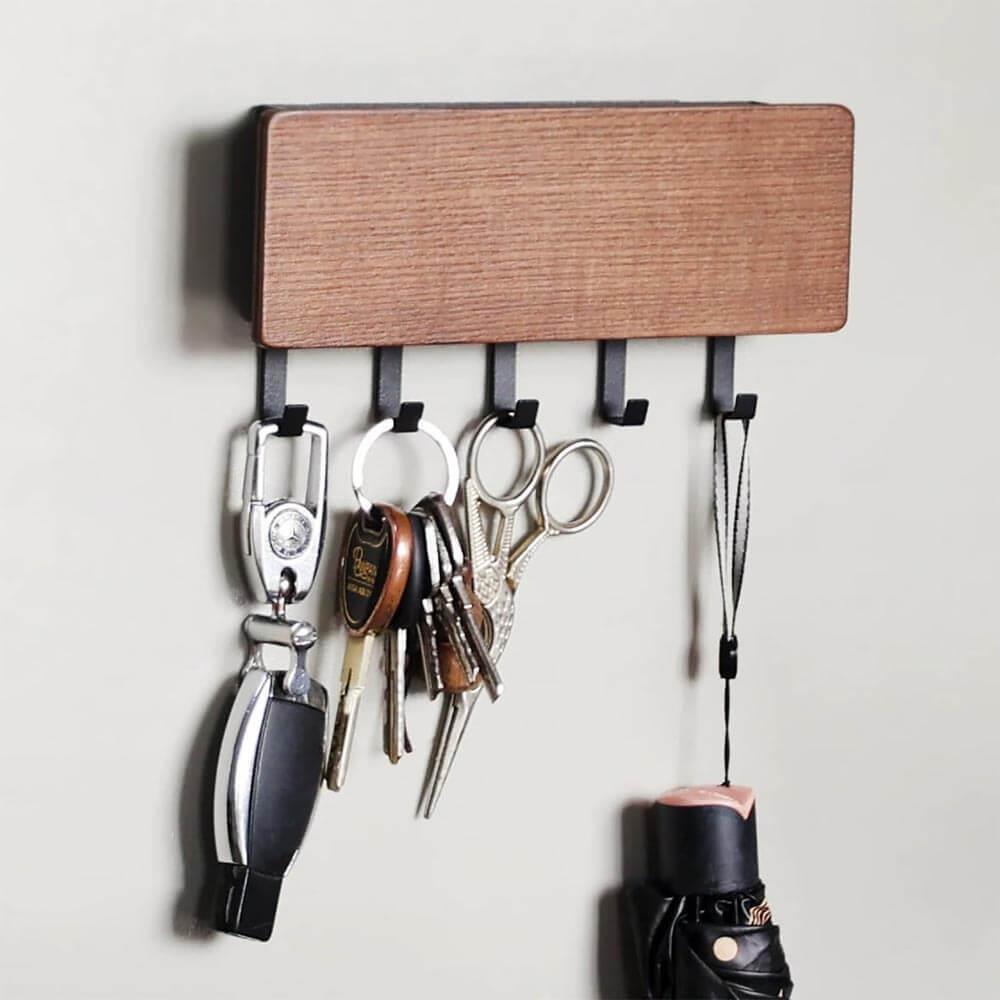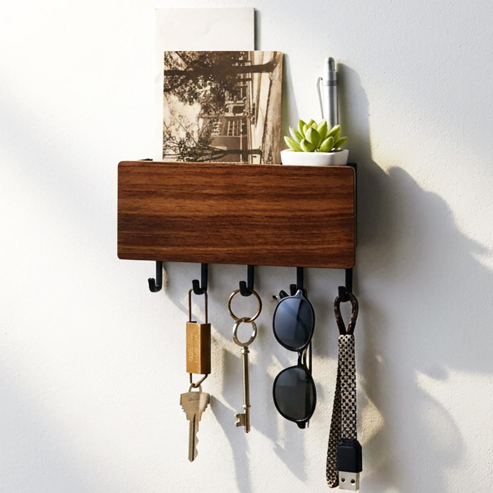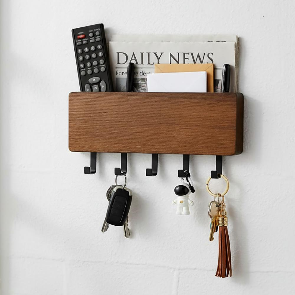 Dřevěný věšák na klíče s přihrádkou