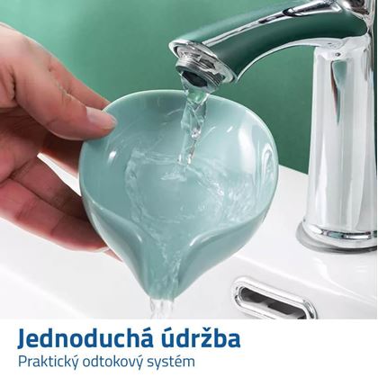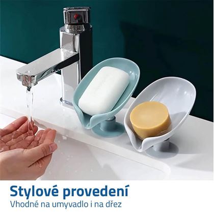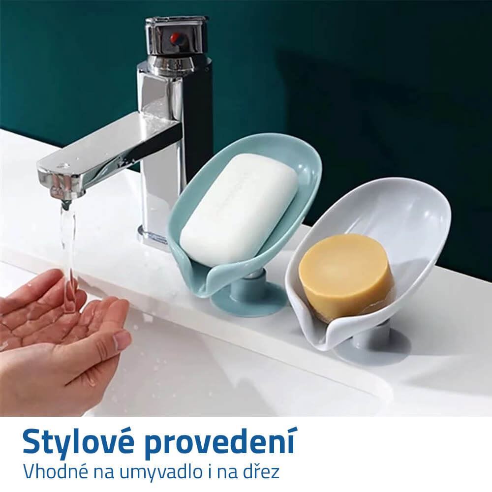 Stylová a praktická mýdlenka v jednom. Jednoduše se sestaví a následně uchytí díky přísavce. Držák je vhodné upevnit na rovný, čistý a suchý povrch. Mýdlenka se hodí jak na umyvadlo, tak na nerezové dřezy či dlaždice. Držák ve tvaru listu je důmyslně vyroben tak, že mýdlo po použití nezůstává ležet ve vodě. Díky odtokovému systému přebytečná voda z listu odteče a mýdlo tak zůstane suché.