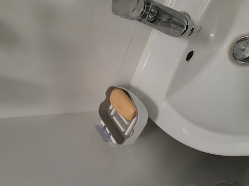 Držák je nalepovací, díky lepítku ho snadno přichytíte na povrch bez vrtání. Před instalací se ujistěte, že lepítko aplikujete na čistý a suchý povrch. Po aplikaci ponechte lepítko alespoň 6 hodin bez zátěže. Držák na mýdlo lze pro snadnější údržbu rozebrat - stačí držák vyndat z lepítka a vyndat vnitřní část držáku.