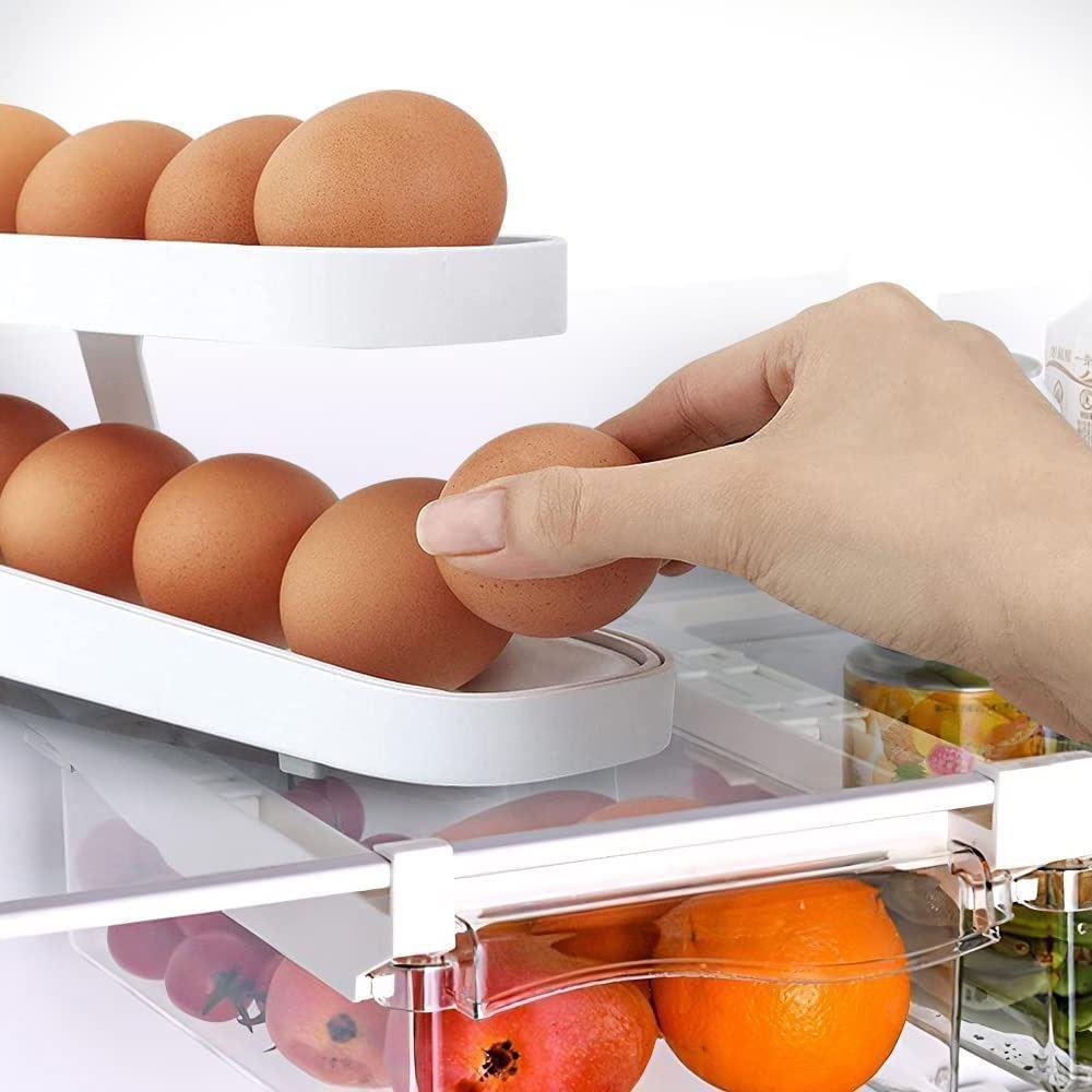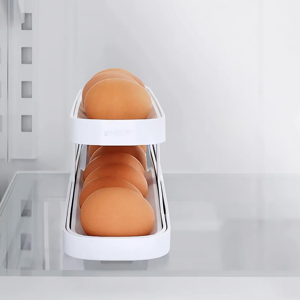 Tento zásobník na vajíčka je navržen pro efektivní využití prostoru v lednici, přičemž nabízí snadný přístup k vajíčkům bez toho, aniž by se rozbila. Jeho dvoupatrová konstrukce umožňuje uskladnění minimálně tuctu vajec.