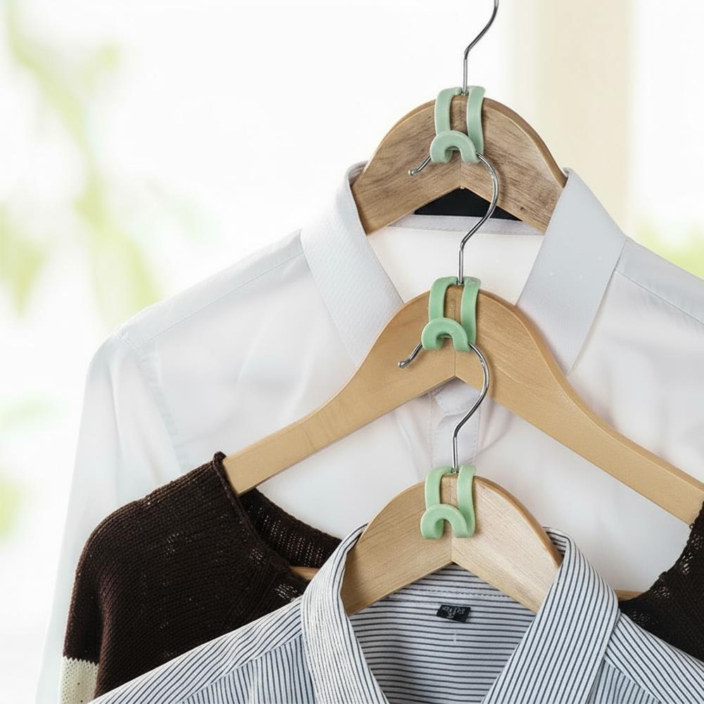 Patříte mezi ty, kteří neustále nakupují nové oblečení? I přesto, že skříň nedisponuje žádným volným místem a oblečení z ramínek vám padá nebo je příliš namačkané na sobě? Pak jsou tyto háčky trefou do černého. Díky nim na sebe můžete ramínka navěšovat. Vždy zaháknete háček na ramínko, na něj pověsíte další ramínko a takto můžete pokračovat do té doby, dokud vaše skříň bude disponovat volným místem na délku.