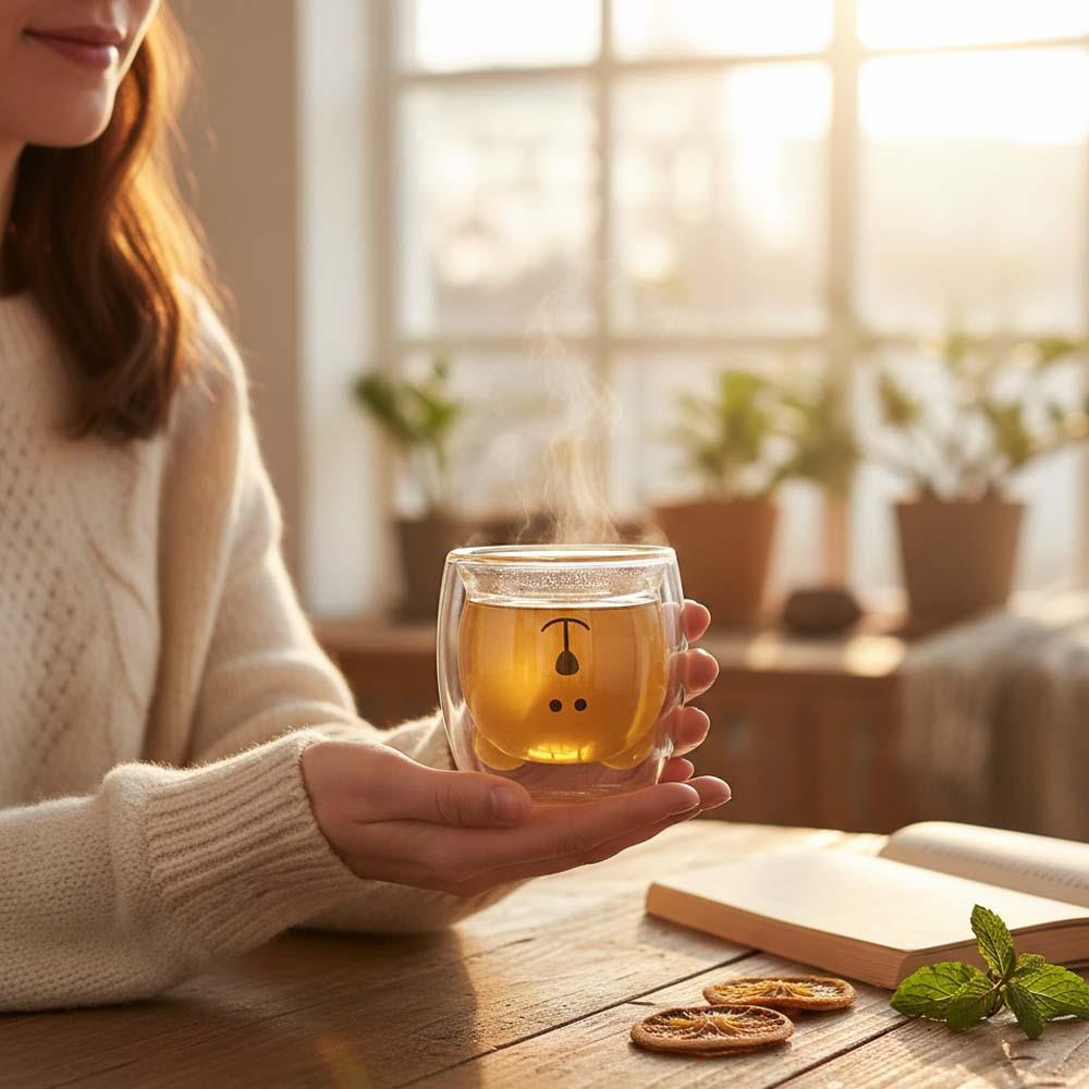 Tento roztomilý medvídek na pití s dvojitou stěnou potěší každého milovníka roztomilých vymožeností. Bez ohledu na to, jaké nápoje ráno preferujete, s tímto hrnečkem budou chutnat o poznání lépe. Hrnek je vhodný jak na studené, tak na teplé nápoje. Naplňte ho třeba kávou a sledujte, jak medvídek krásně vynikne.