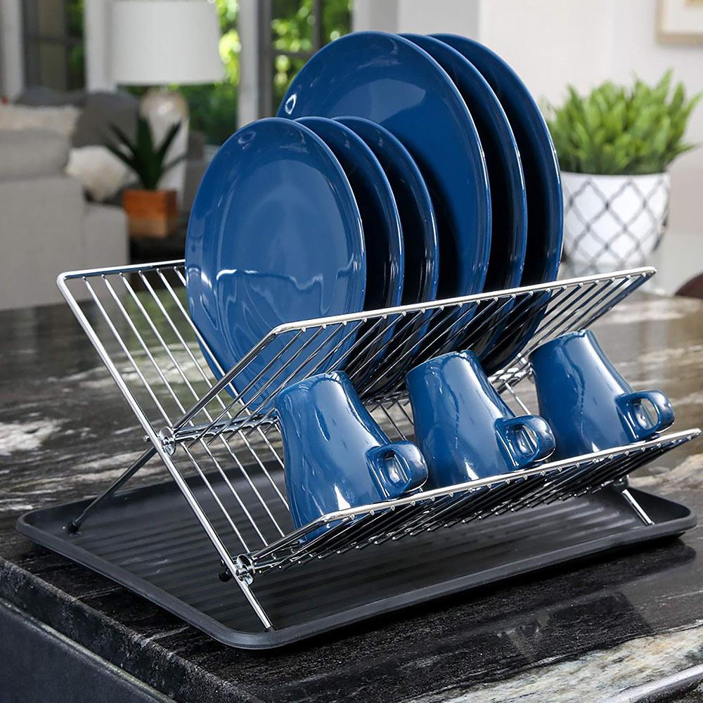 Mytí nádobí je každodenní činností, která spoustu z nás sice nebaví, ale je nutné ji vykonat, aby se nám ve dřezu nekupily hory talířů a hrnků a kuchyň zůstávala příjemným místem, kde se tvoří nejen skvělé chutě, ale i dobrá nálada. My pro vás máme alternativu v podobě tohoto kovového odkapávače s plastový tácem, který je nejen skladný díky svému skládacímu designu, ale také praktičtější na údržbu, protože nerez přirozeně odpuzuje nečistoty, které na ní oproti plastu tolik neulpívají.