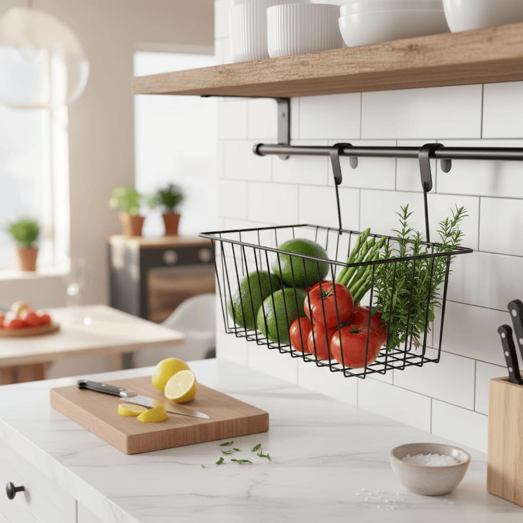 Potřebujete si uspořádat pár svých věcí u sebe doma v kuchyni či koupelně, ale chybí vám místo? Tento závěsný košík si zavěsíte na dvířka kuchyňské linky nebo jiné skříňky a složit si do něj můžete utěrky, kuchyňské doplňky nebo kosmetické produkty. Od teď už nemusí být ve vaší místnosti nepořádek. Nyní vás bude čekat pouze uspořádaný prostor.