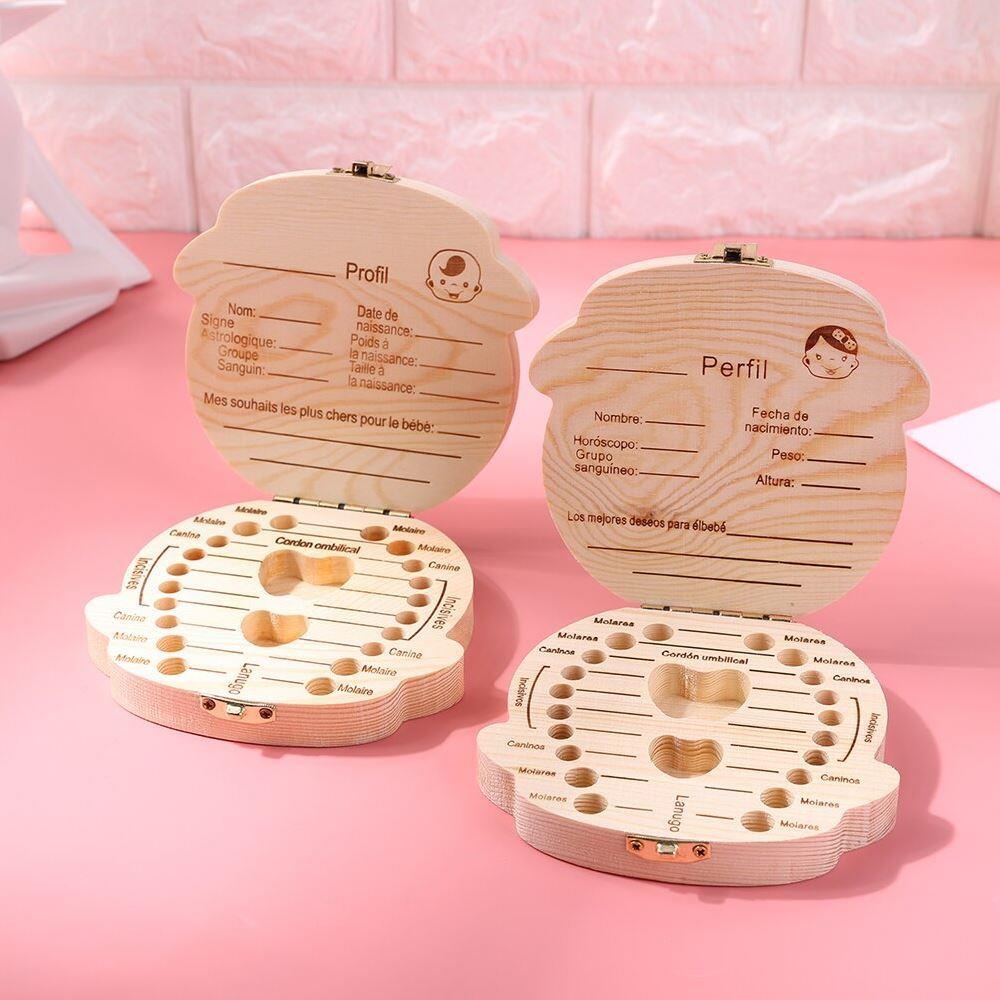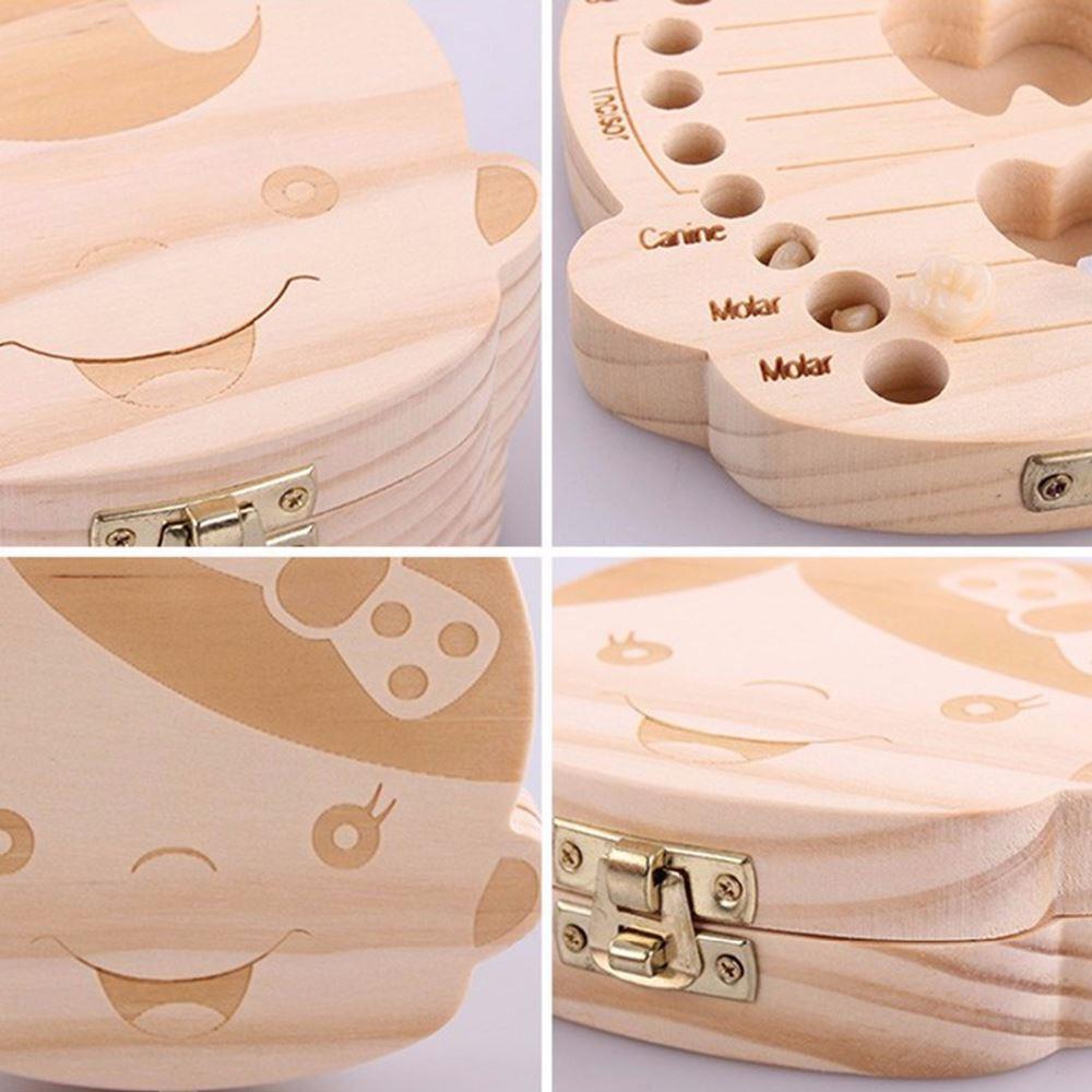 Veselá dřevěná krabička je roztomilou schránkou na uchovávání cenností vašich dětí. Všichni si totiž asi nevzpomeneme na první vypadnutý zub a na to, který to byl. Díky této krabičce máte možnost uschovat vašim dětem vypadané mléčné zoubky a až vyrostou, tak jim tyto vzácnosti můžete ukázat, a třeba si i vzpomenete na nějakou veselou příhodu.