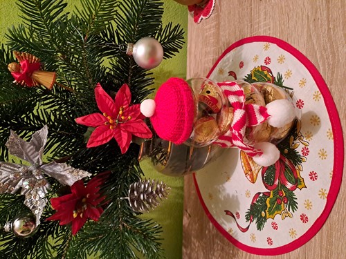 hezká dekorace - dárek s bonbony a světelným řetězem, líbil se