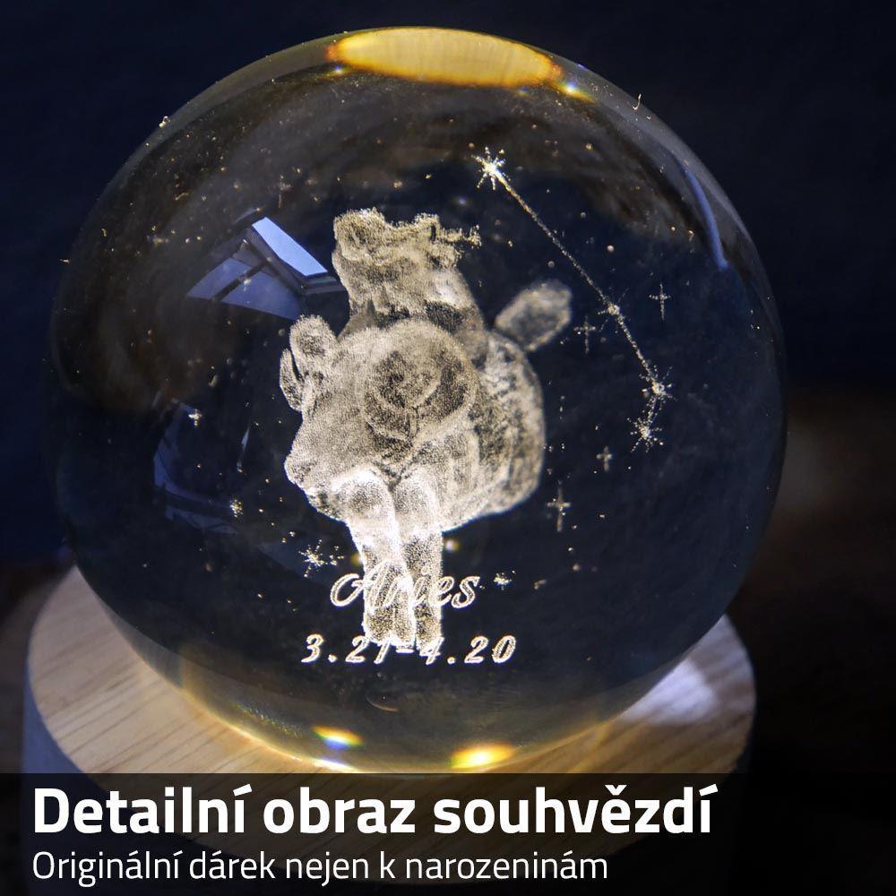 Krásná vzpomínka, milý dárek či elegantní lampička? To vše je tato svítící koule se znamením zvěrokruhu. Skloubením skla a dřeva vznikla vkusná dekorace. Jste milovníci souhvězdí či máte někoho takového ve svém okolí? Pak je tato svítící koule pro vás to pravé. Hodí se vám jak na pracovní stůl, tak do ložnice.