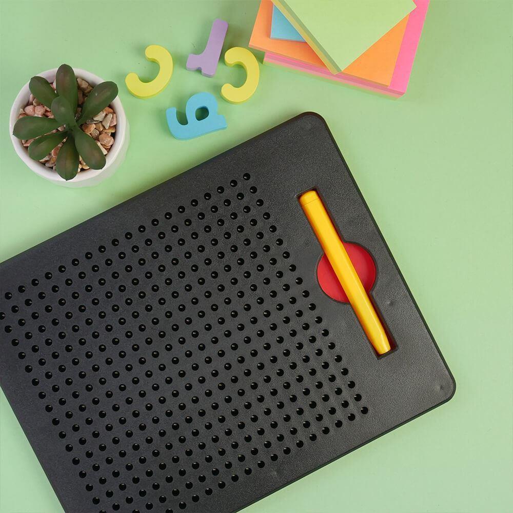 Magnetická kreslící tabulka je chytrá věc, která zabaví děti na dlouhé hodiny a zároveň podpoří jejich kreativitu. Stačí vzít přiložené pero a začít kouzlit – jakmile jím přejedete po tabulce, vyskočí magnetické kuličky a vykreslí váš obrázek. Děti si snadno osvojí psaní písmen, číslic nebo si jen tak hrají s tvary a obrázky.