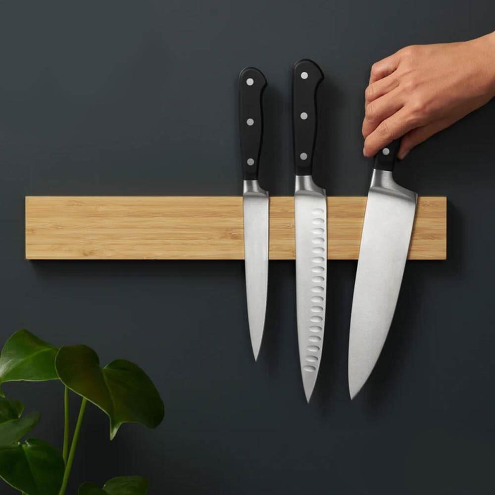 Nepostradatelná pomůcka do kuchyně pro každého milovníka vaření! Zapomeňte na umisťování nožů do příborníků či šuplíků. Nejen, že hrozí nepříjemné zranění, ale také otupení ostří! Magnetický držák na nože stačí jednoduše uchytit na vruty, které jsou součástí balení. Ideálním místem pro povešení držáku se stane prostor přímo nad pracovní deskou. Budete tak mít veškeré náčiní neustále po ruce.