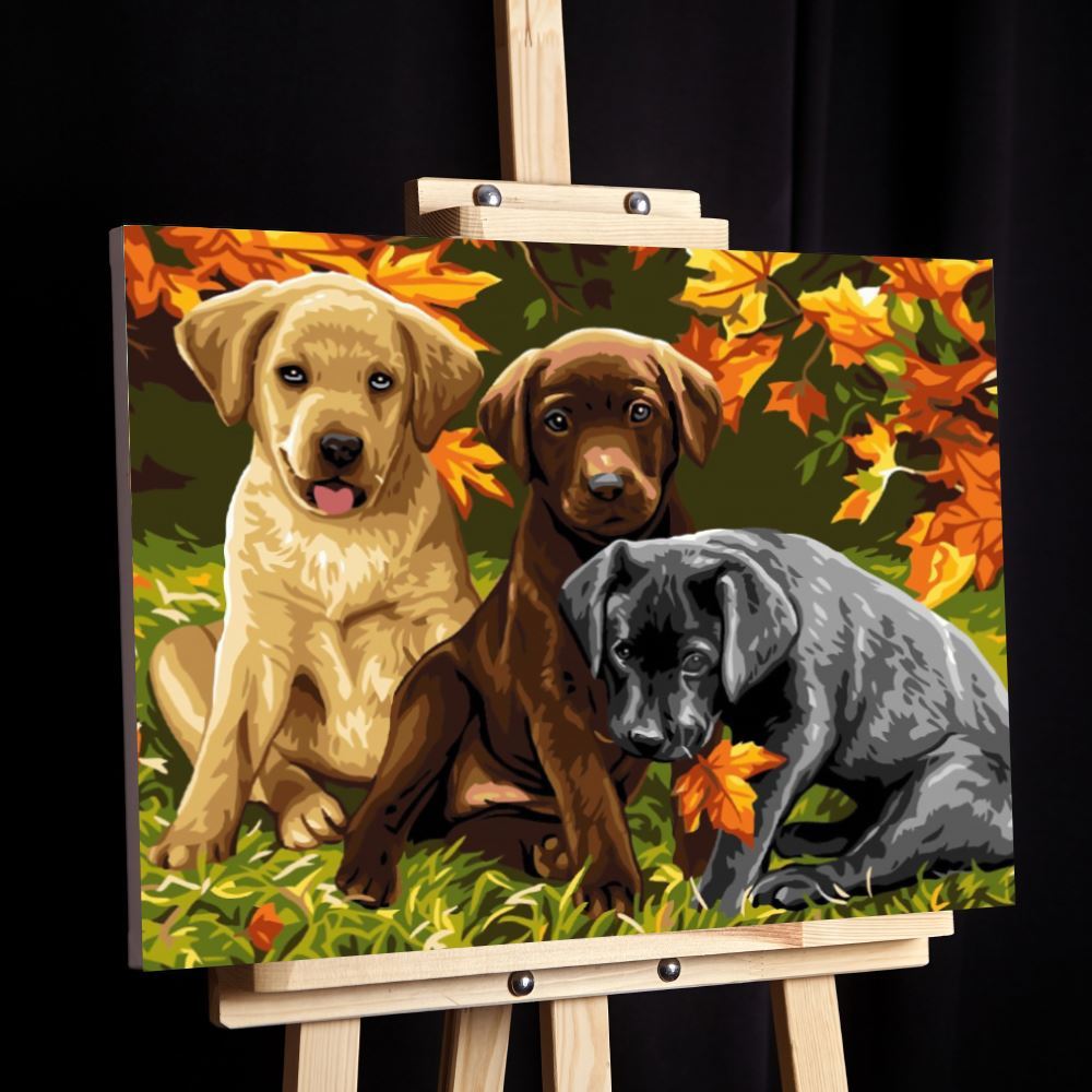 Obrázek z Malování podle čísel, vypnuté plátno na rám - pejsci