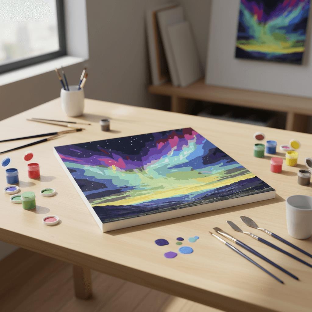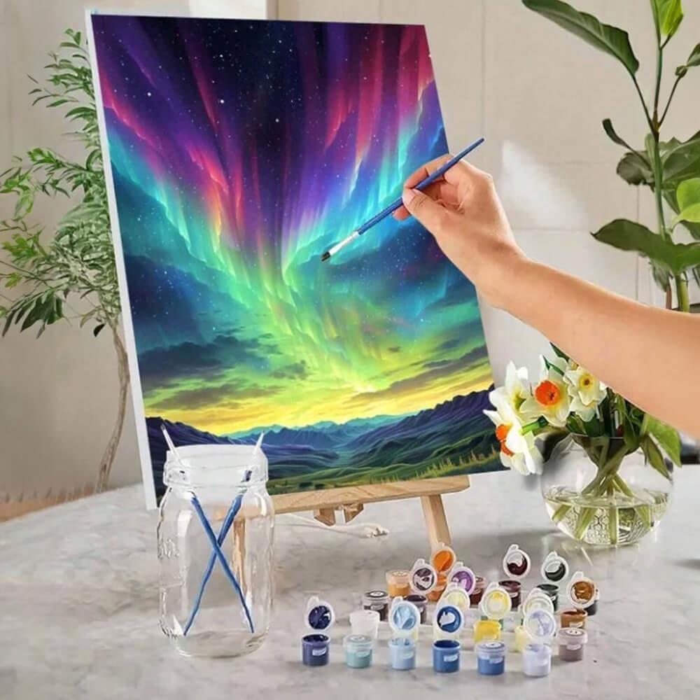 Obrázek z Malování podle čísel, vypnuté plátno na rám - polární záře