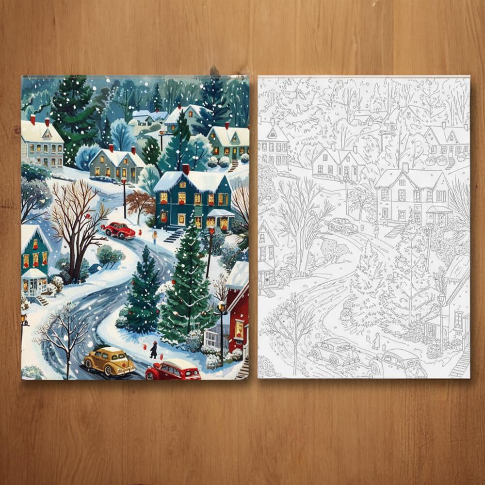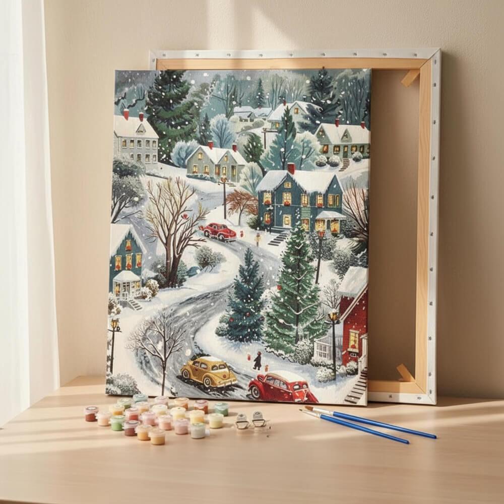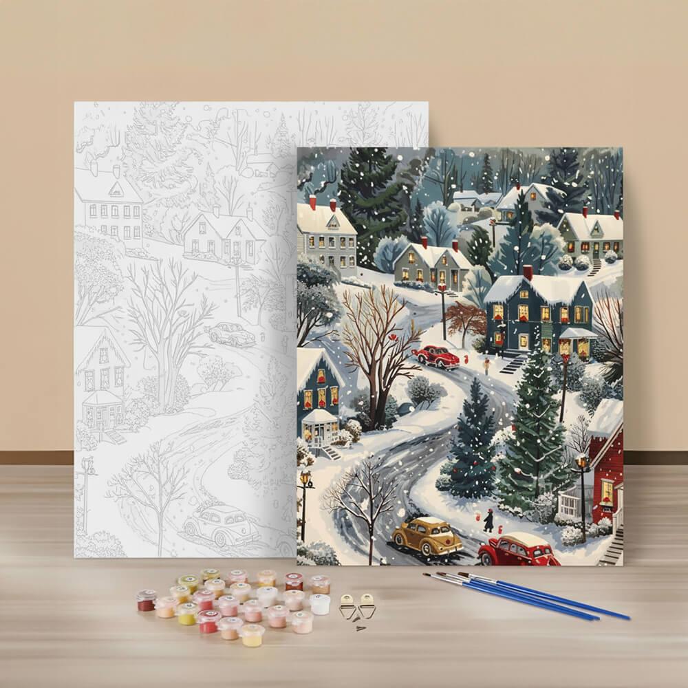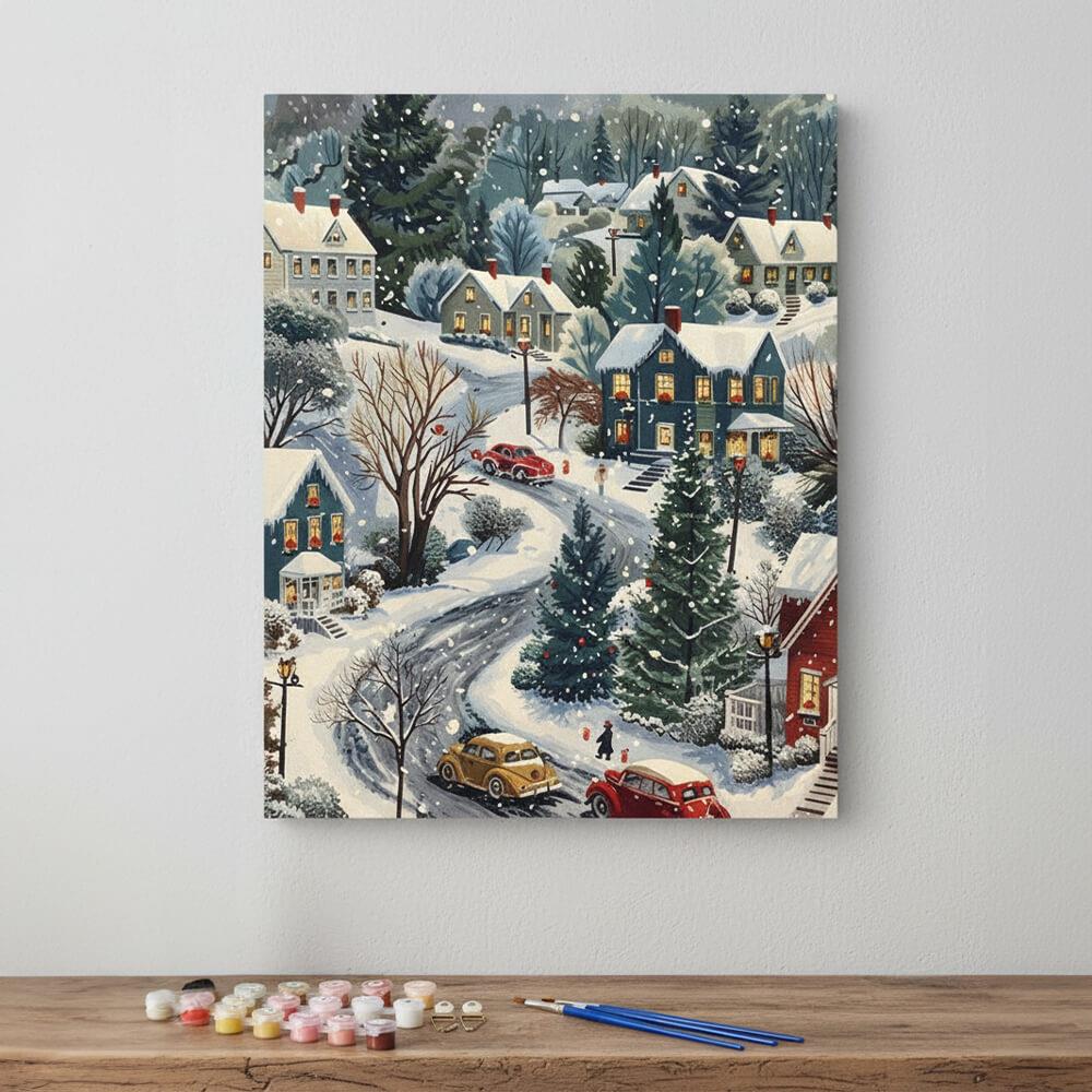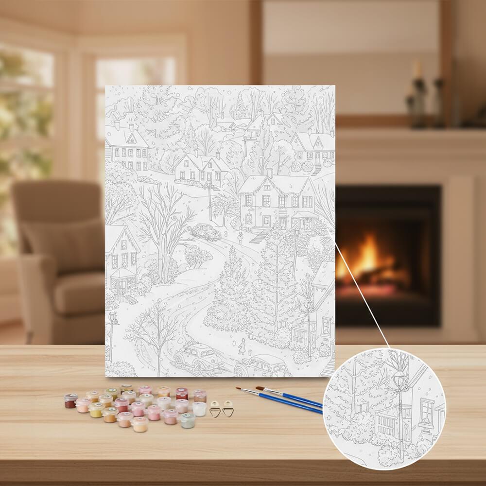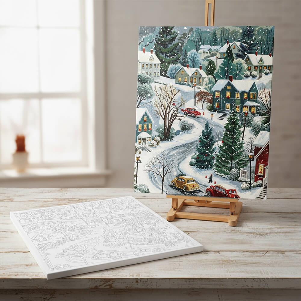 Obrázek z Malování podle čísel, vypnuté plátno na rám - zimní venkov
