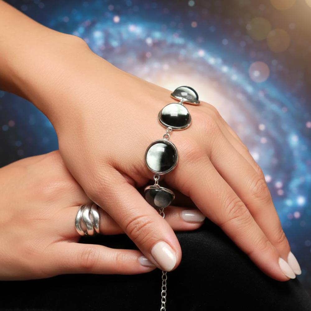 Ozdobte vaše zápěstí tímto jedinečným šperkem, který znázorňuje jednotlivé fáze měsíce! Nezáleží na tom, zda jste znalkyně vesmíru nebo ráda nosíte zajímavé šperky, tento krásný náramek bude slušet každé ženě. Měsíční náramek je vhodný na denní nošení, ale blýsknete se s ním i na večerních událostech, a to doslova.