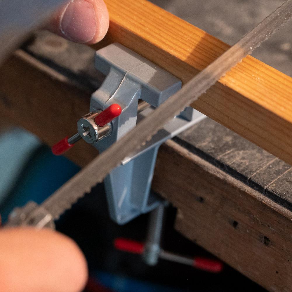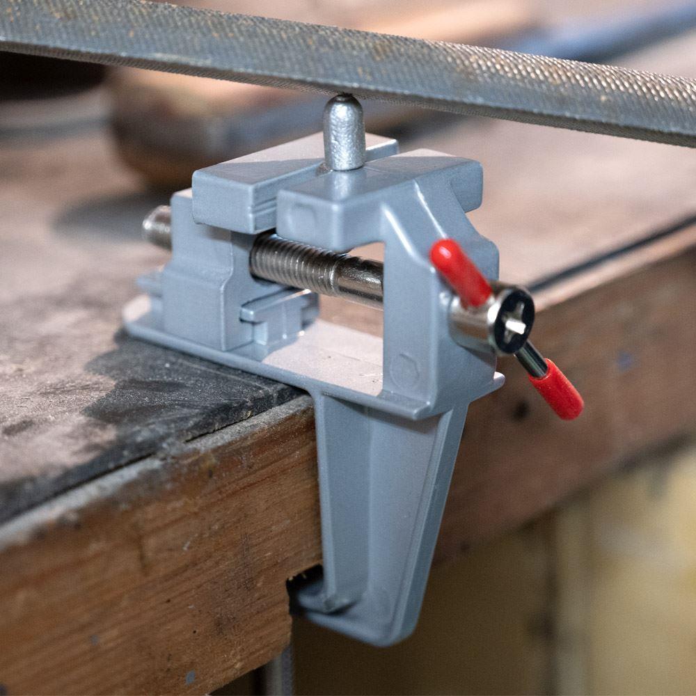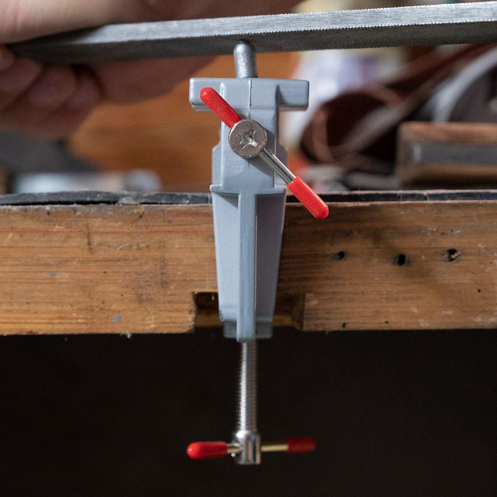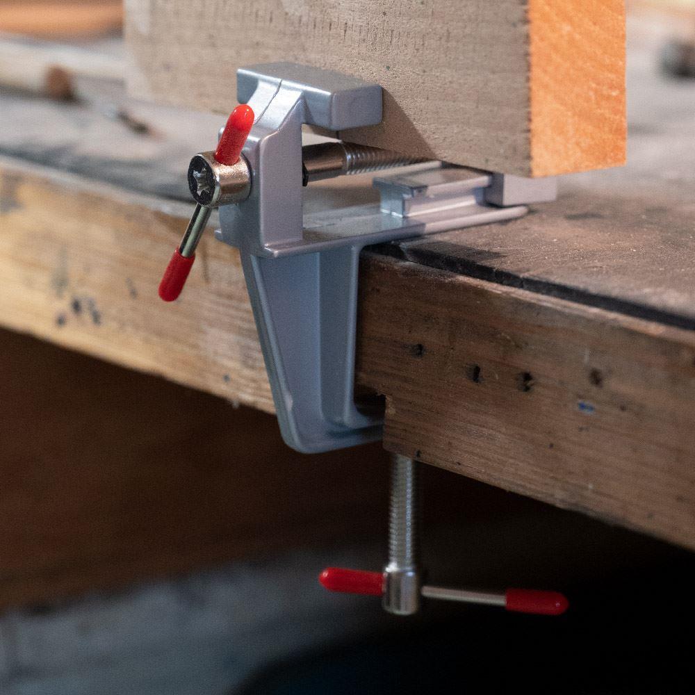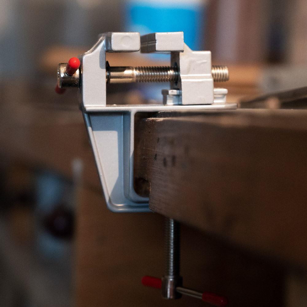 Potřebujete obrousit maličký kousek železa nebo vyřezat dírku do dřívka? Pro všechnu titěrnou práci se dokonale hodí mini svěrák. Připevníte ho na pracovní desku a můžete do něho umístit předměty až do velikosti 2 cm.