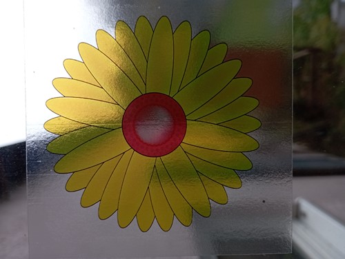 • Nálepka na okno v podobě květiny, určená k lapení létajícího hmyzu