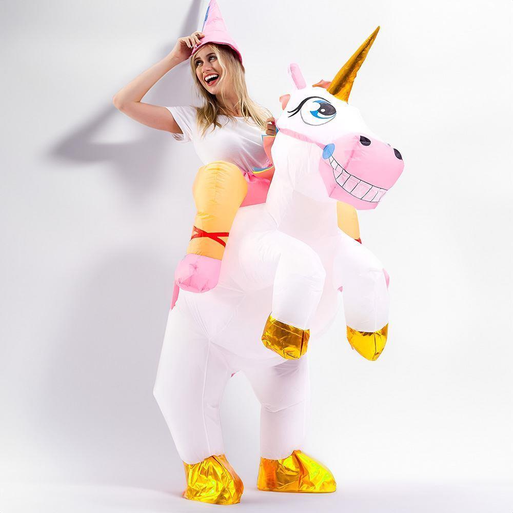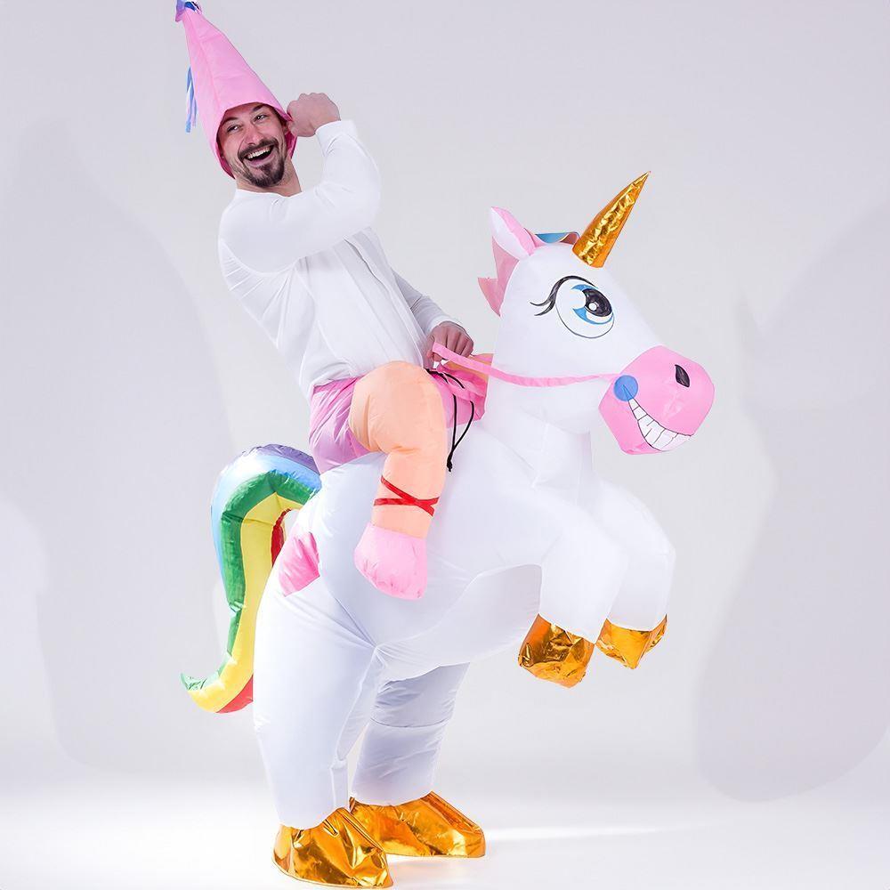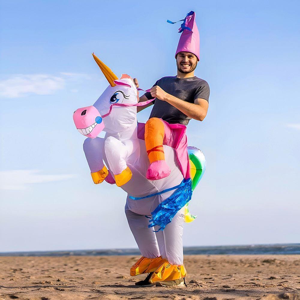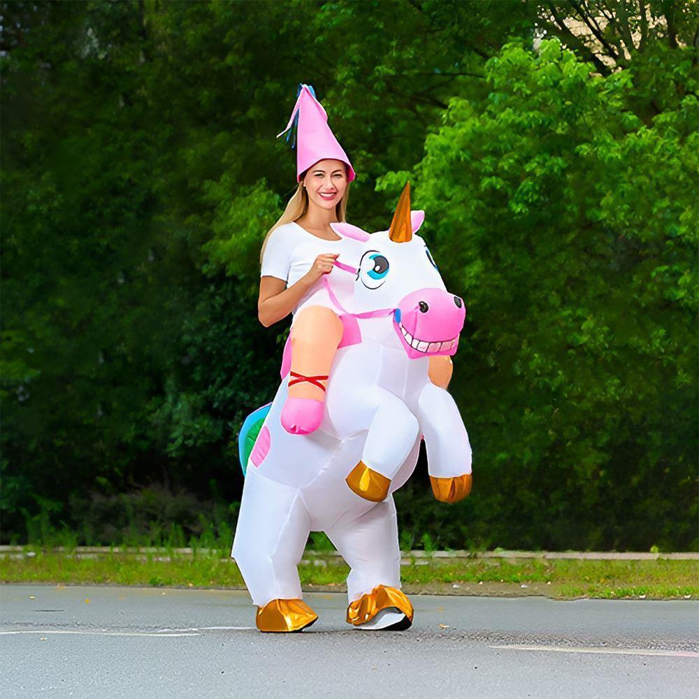 Užijte si pohádkovou zábavu s naším nafukovacím kostýmem jednorožce. Ideální pro karnevaly, tematické večírky nebo jen tak pro radost na rodinných oslavách. Kostým je samo nafukovací díky praktickému větráčku. Pohodlné nošení zajišťuje elastický pas a prostorný otvor pro oblékání. Součástí balení je i špičatá čepice, díky které budete neodolatelným středem pozornosti!