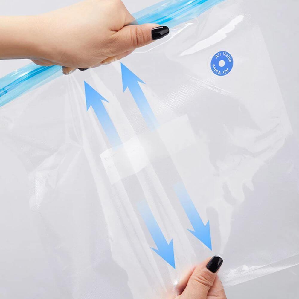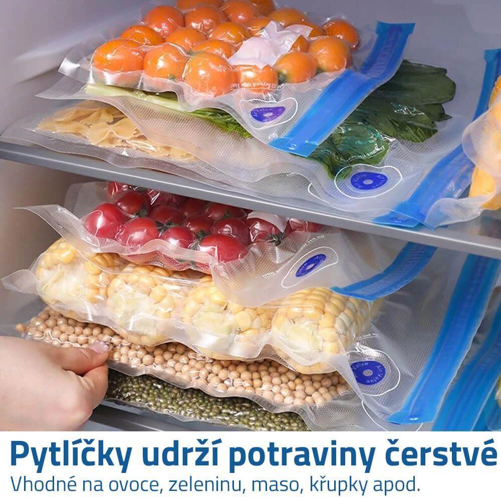 Vakuové sáčky jsou skvělý doplněk do kuchyně. Zamezí plýtvání jídla. Zbyla vám půlka hrušky nebo jablka, použijte právě tento vakuový sáček. Potraviny do něj vložte a vysajte vzduch pumpičkou. Do sáčku můžete vložit cokoliv od zeleniny, ovoce, cereálie až po maso. Jídlo, díky vysátému vzduchu ze sáčku, vydrží mnohem déle čerstvé a neokoralé. Se sáčky navíc také ušetříte perfektně místo v kuchyni. Pytlíčky můžete popsat fixou a udělat si tak v mrazáku mezi masem pořádek.