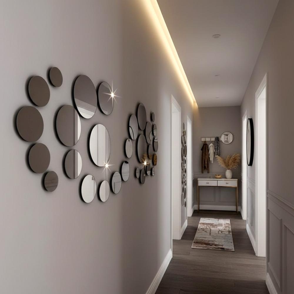 • Nálepky na zeď v podobě zrcadlových kruhů/koleček