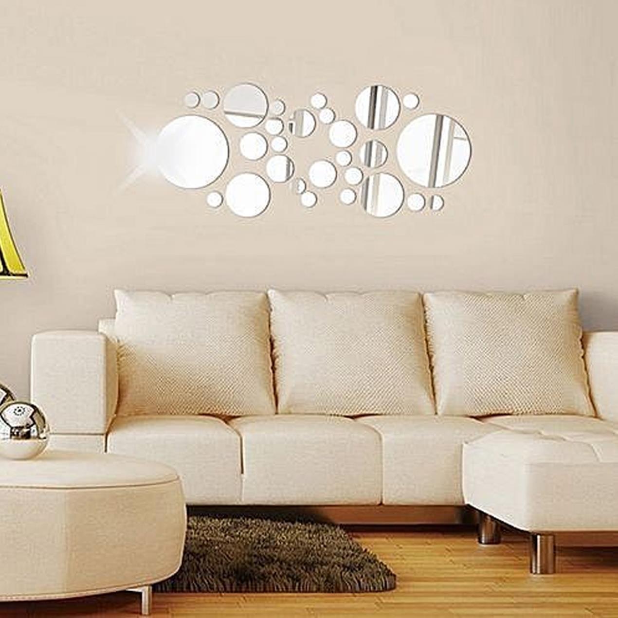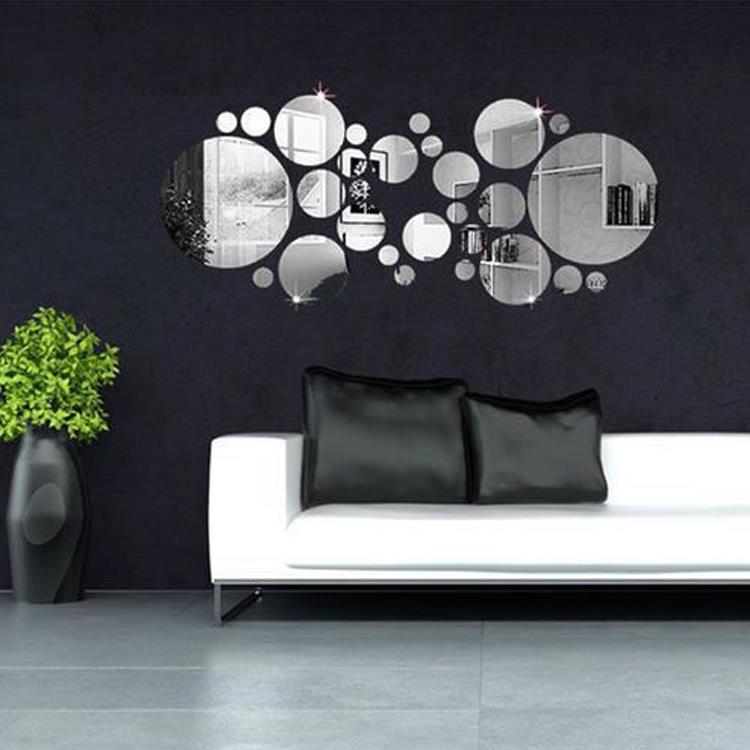 Pokud chcete oživit interiér, krásné elegantní a vkusné nálepky na zeď v podobě malých zrcadel jsou tím pravým zpestřením. Díky zrcadlovému efektu se vám opticky zvětší prostor.